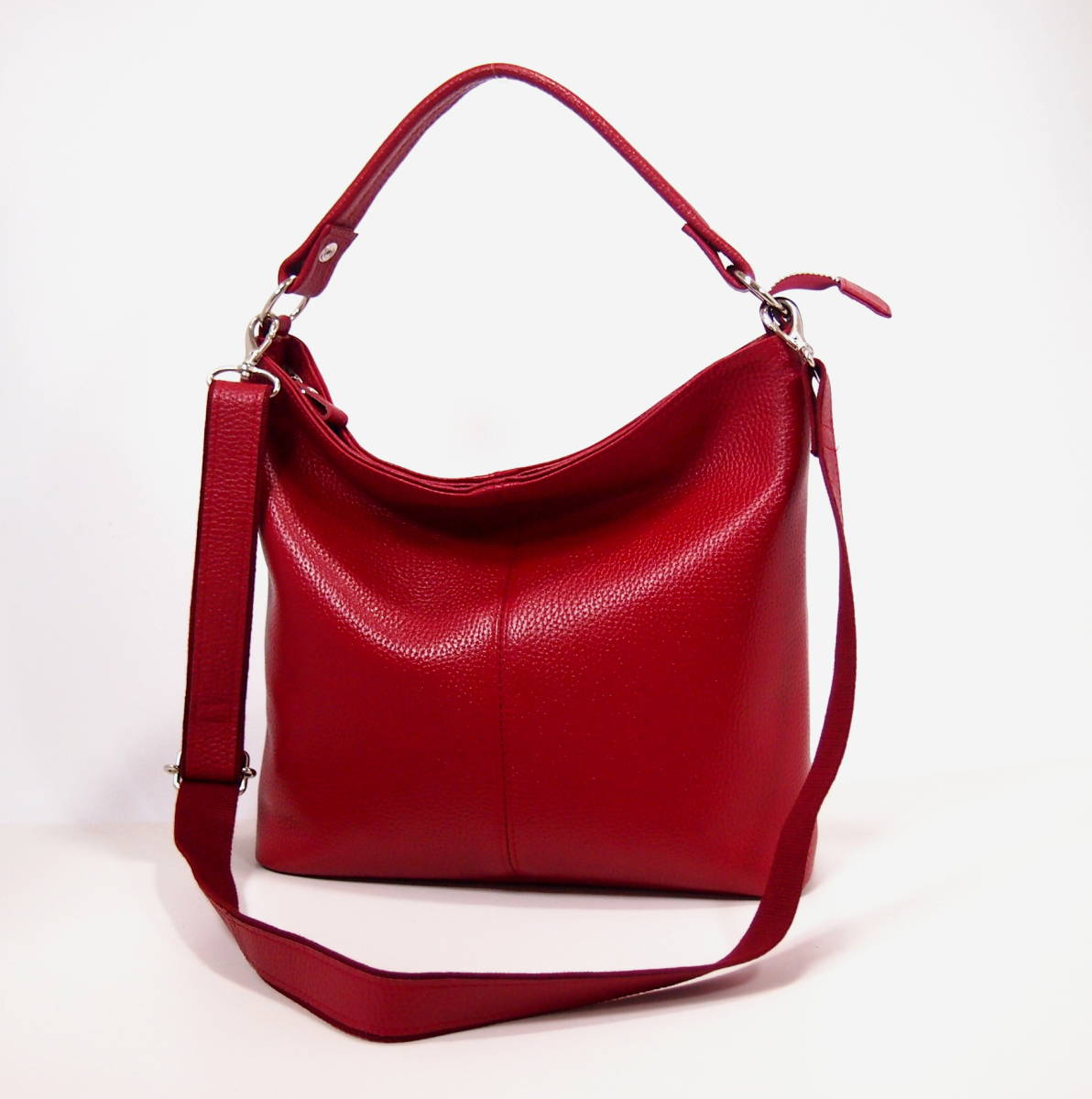 ★新品★ハンドメイド★日本製▲ソフト牛革★2WAYショルダーバッグ★アカ色★ハンドル取り外し可★