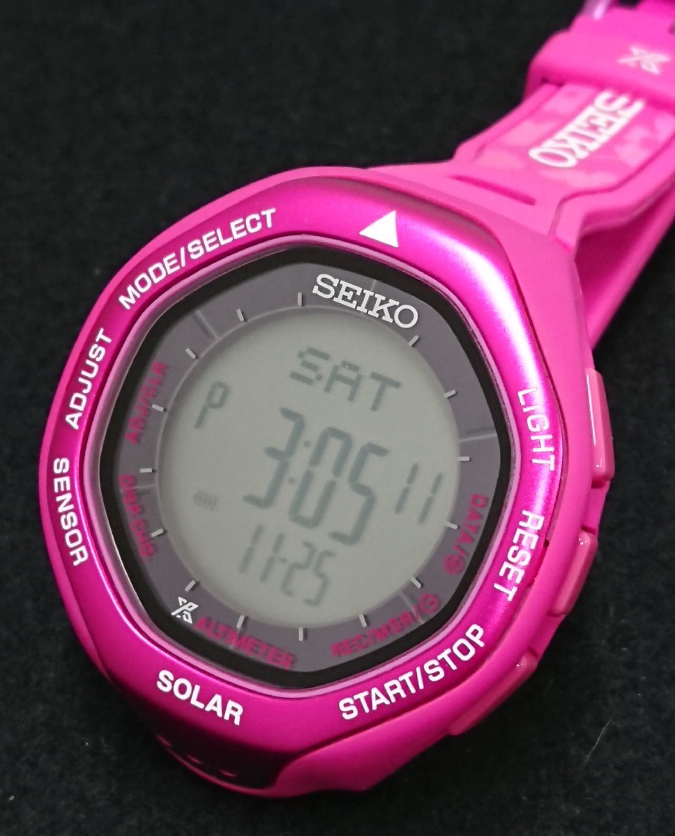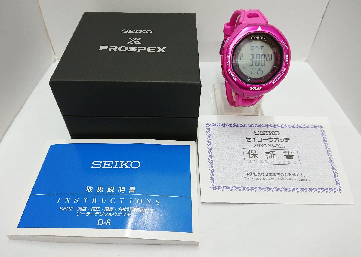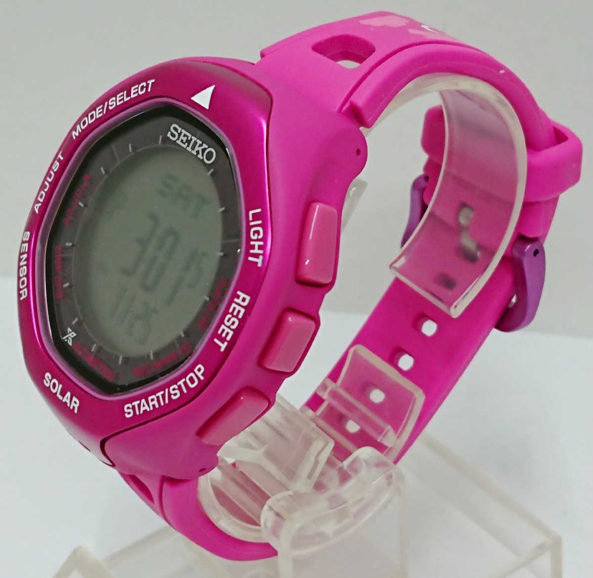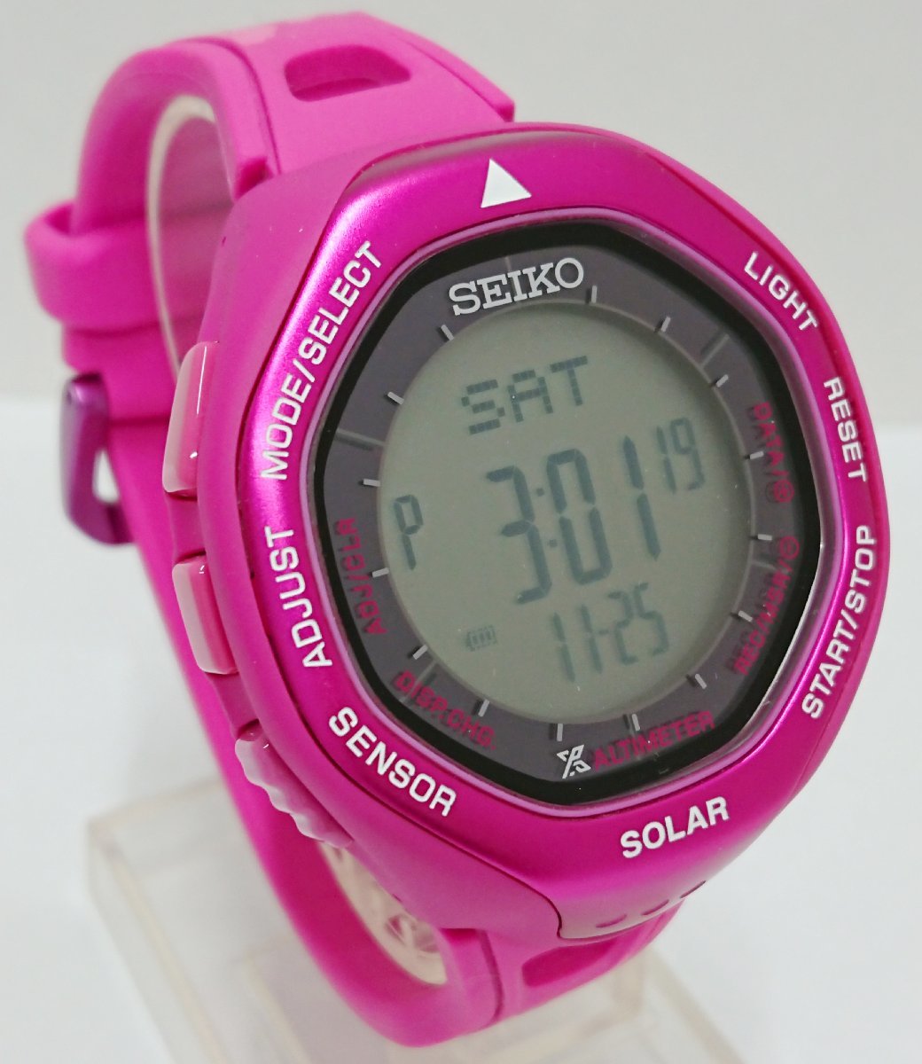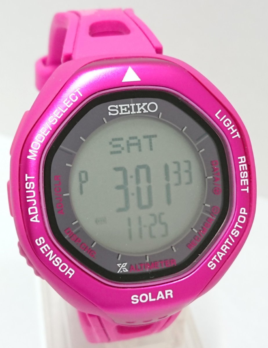 キュートなピンクカラー♪ SEIKO PROSPEX/プロスペックス Alpinist/アルピニスト 登山用ソーラー ウォッチ SBEB023 腕時計 取説付き USED*
