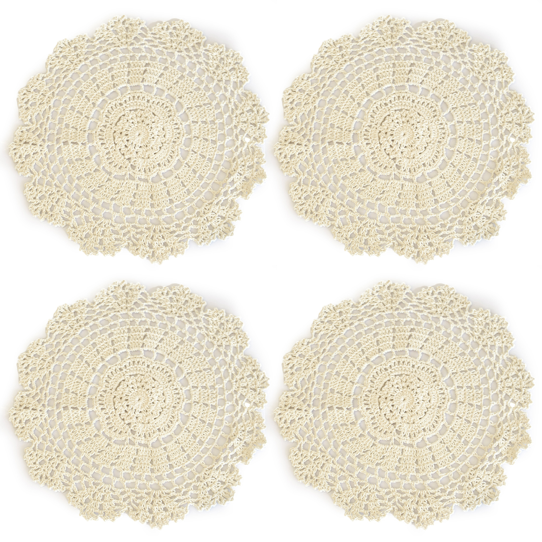 かぎ針手編みレースマット Mサイズ 直径30cm 4枚セット 綿糸テーブルマット テーブルプレースマット ラウンドマット