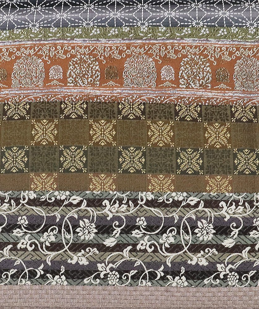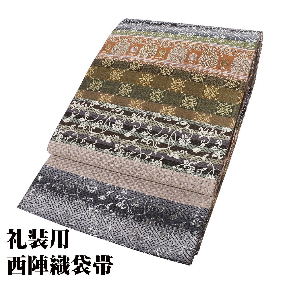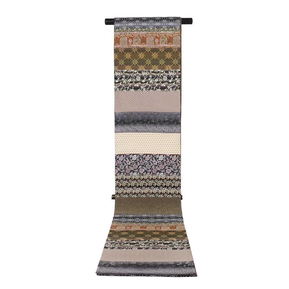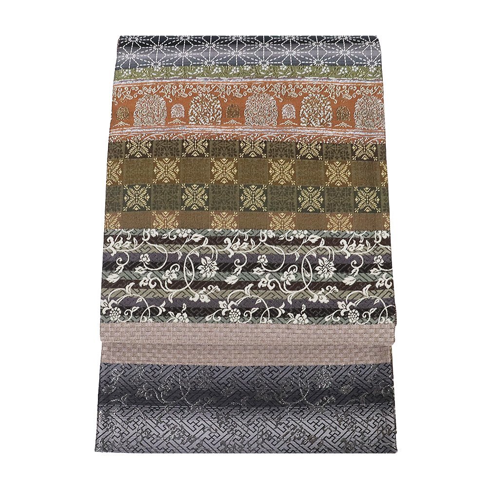 | 西陣織袋帯 名物裂 黒・グレー・茶・緑・薄紫地 唐花・華文・鱗文・花菱・松菱・網目模様 仕立て上がり | |
