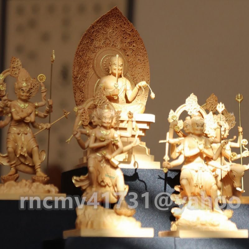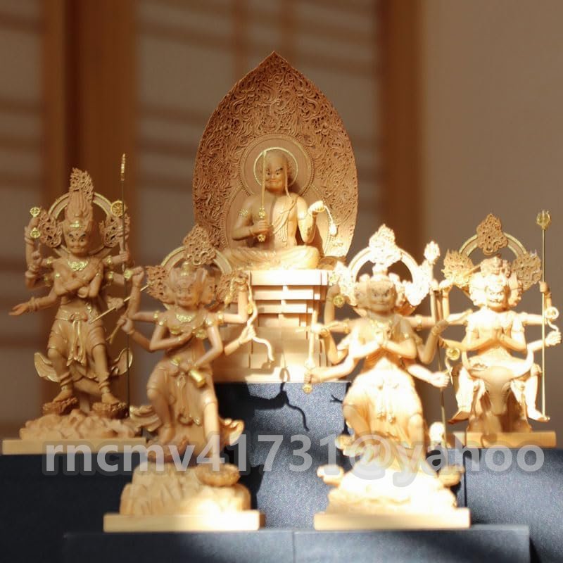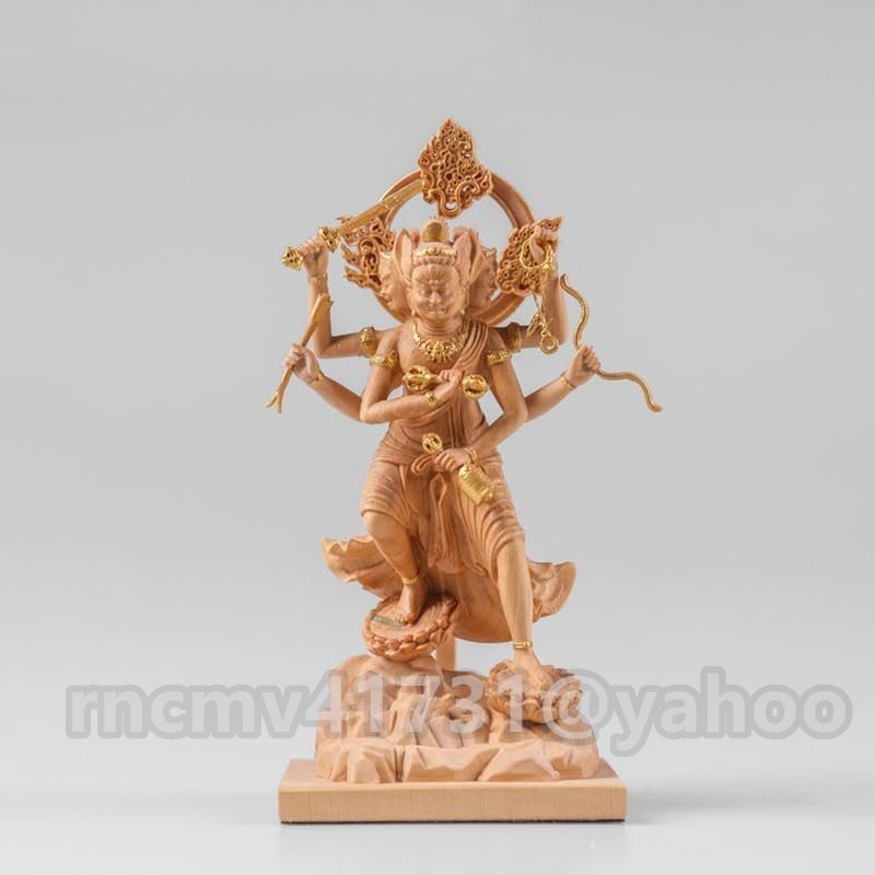 「81SHOP」金剛夜叉明王 ★ 木彫りの仏像 五大明王之一 柘植 金泥仕様 高さ13cm