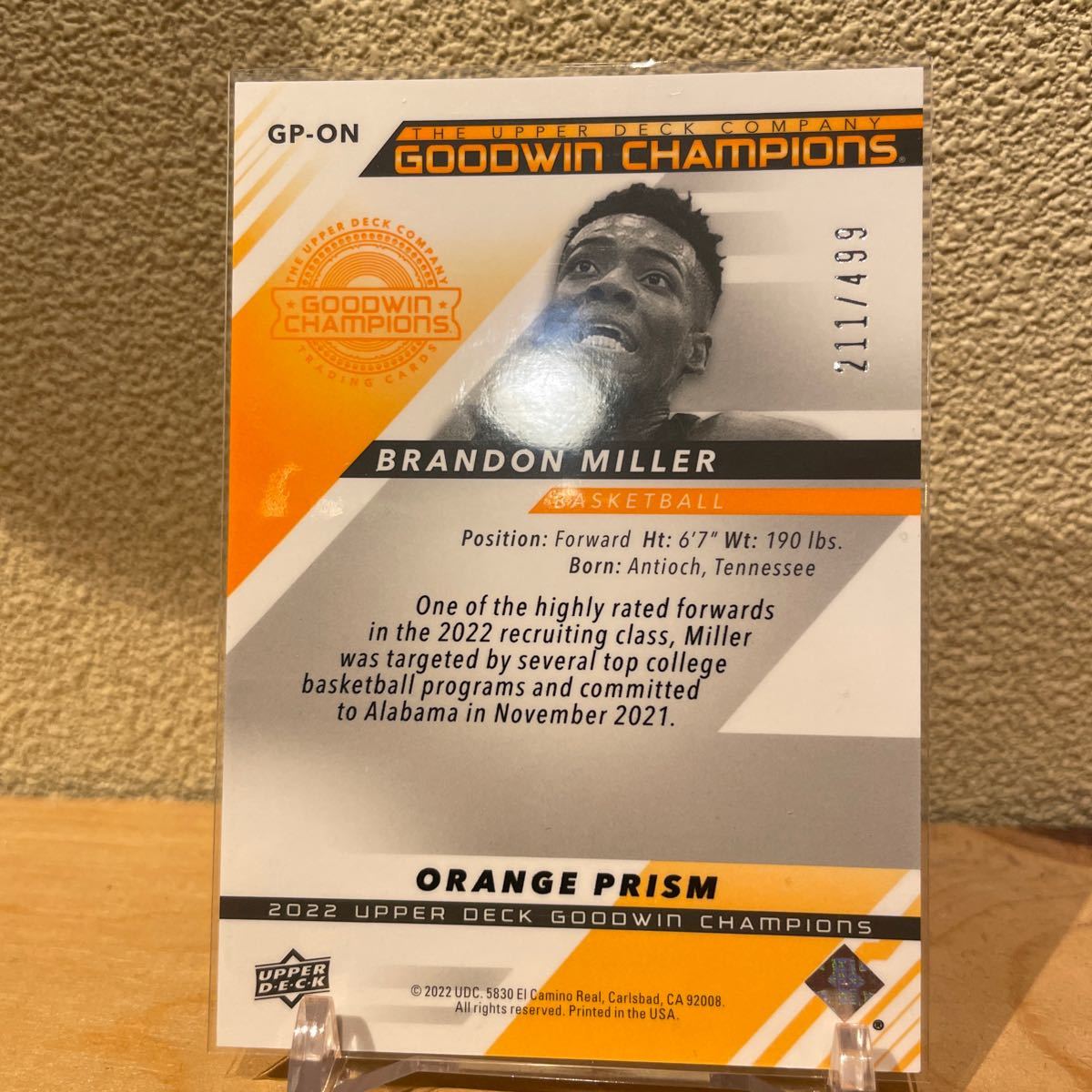 2022 UD GOODWIN CHAMPIONS BRANDON MILLER ORANGE PRISM /499シリ CHARLOTTE HORNETS
