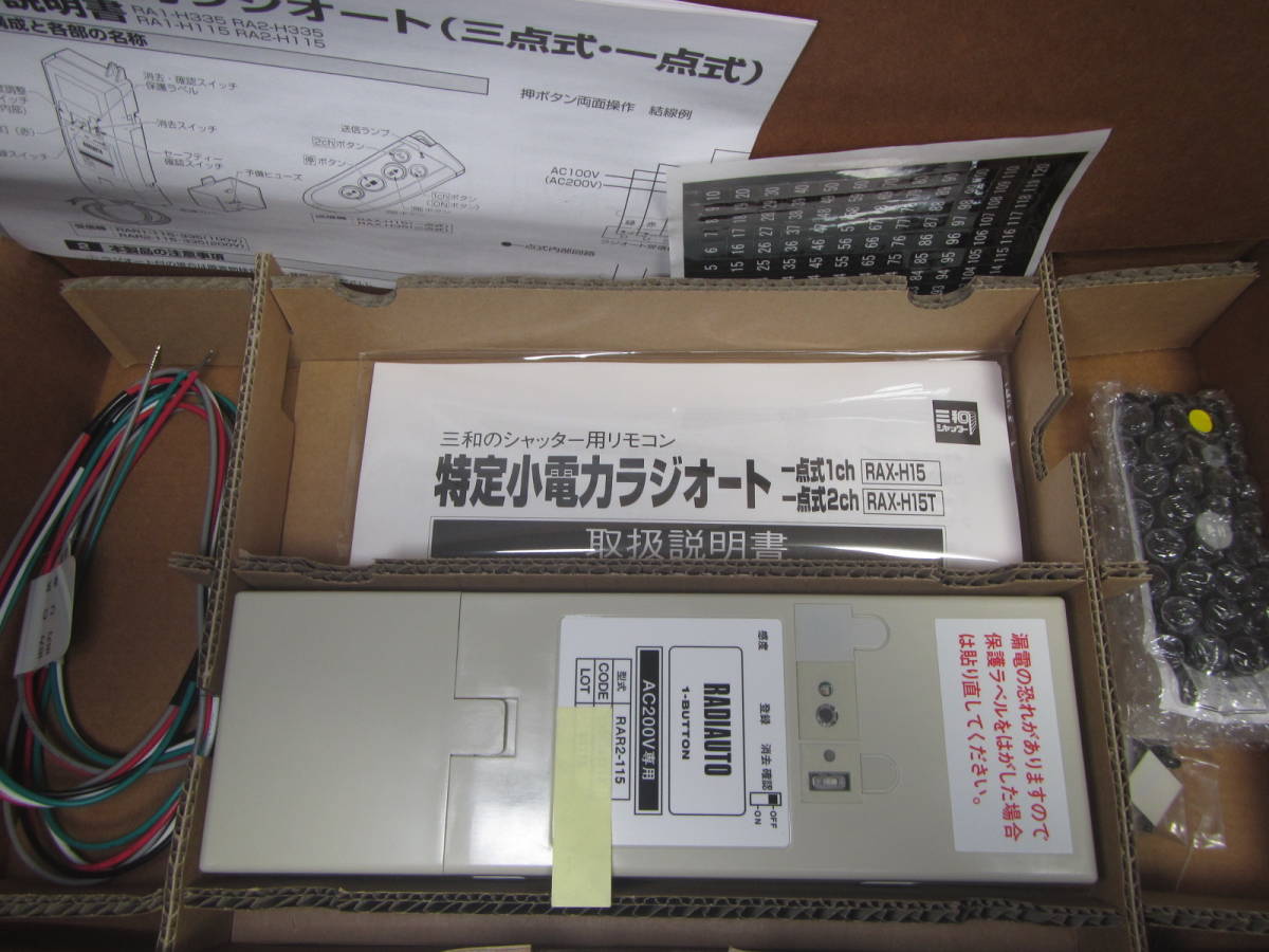 | 200vRAJISET★三和シャッター RAX-H15 リモコン ラジオート 送受信機 1点式標準セット (RA2-H115) 200V 新品 箱無しなら送料520円~★ | |