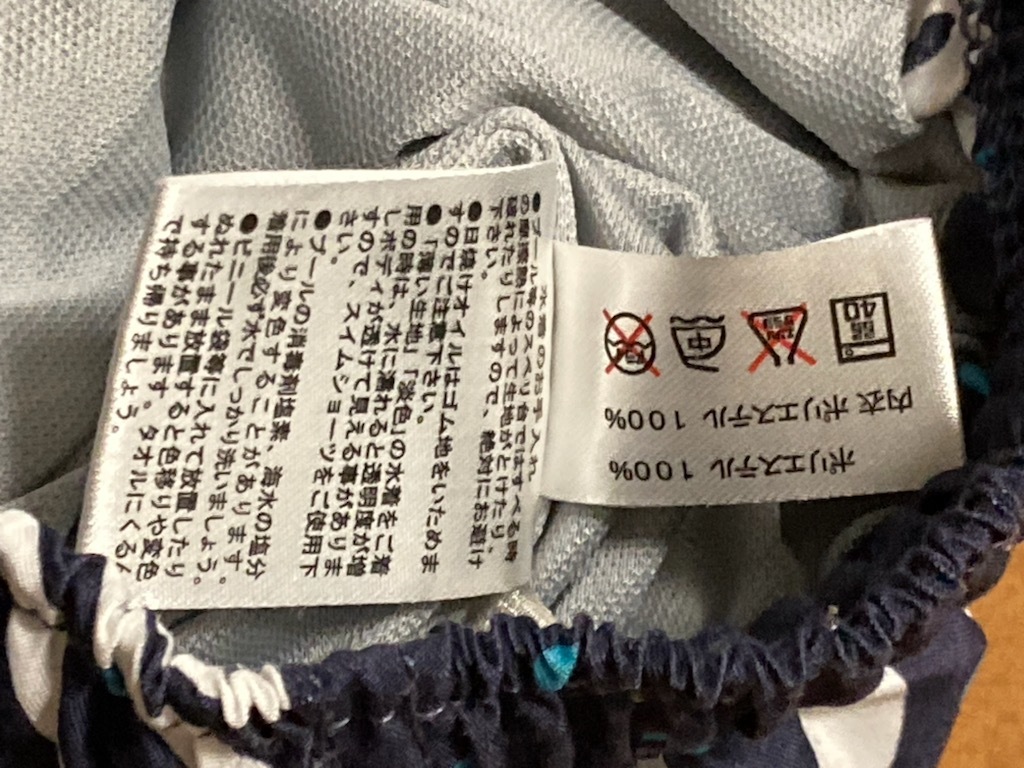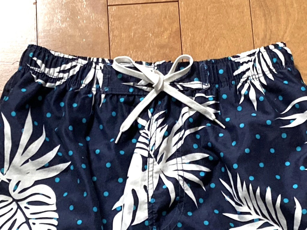 数年前に購入した、水泳パンツ、色は濃いネイビーに水色のドットです。 ウエストはゴム&と紐でしばるタイプ、中のアンダーウェアにあたる部分だけにパンツ状の裏地がついています。 年に1回着るかどうかで、2、3回ほど着たあとは着る機会がなくなりずっとしまったままになっていました。 保管期間があります。 キズ、汚れなどないと思いますが、商品の性質上、細かいことを気になさらない方のみご入札ください。 サイズ:M ウエスト76-84 着丈約52cm ウエスト約32cm(平置き実寸。素人採寸なので、多少の誤差はお許しください) 素材:ポリエステル100% ※オークション終了後はお手数ですが落札者さまよりお手続きを開始してください。 急用などで2泊以上対応ができない場合は自己紹介欄に記載いたします。 |
