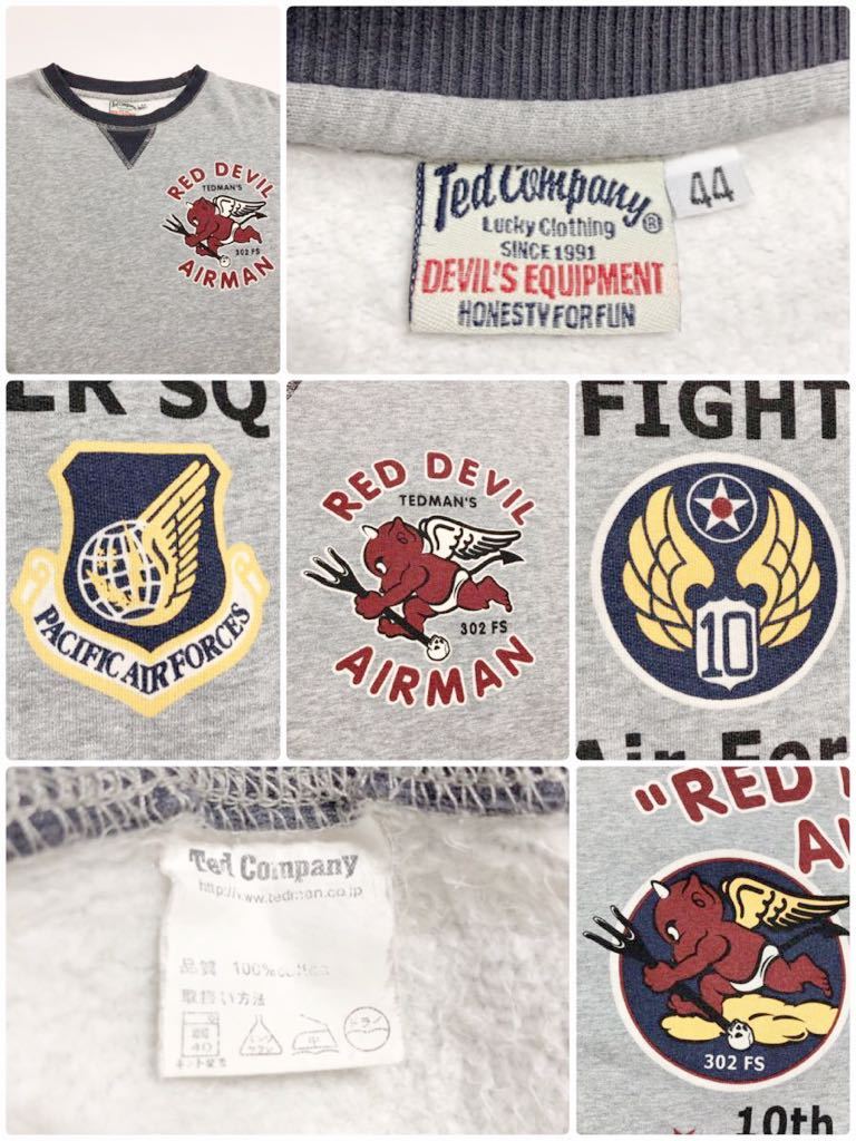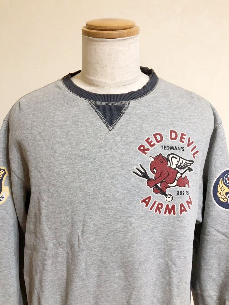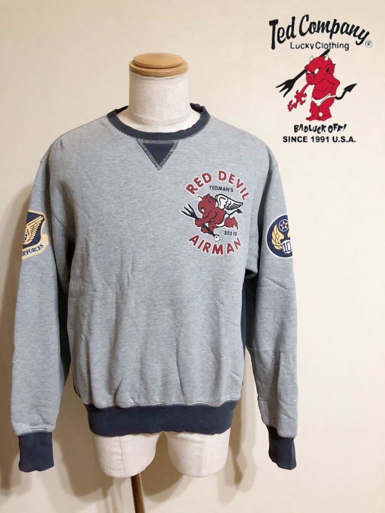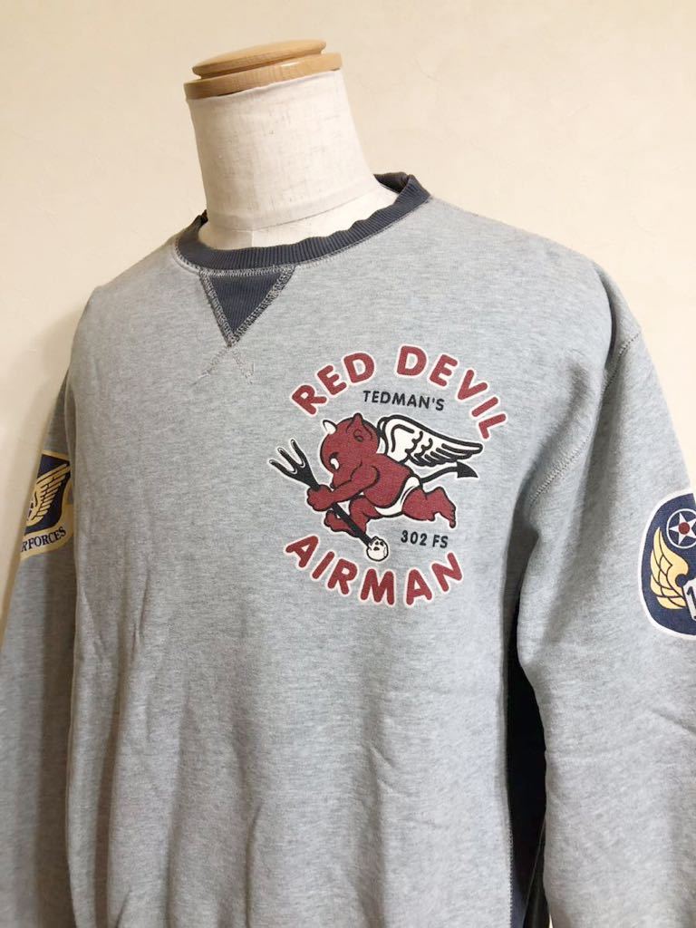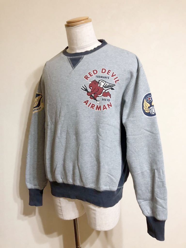 TEDCOMPANY TEDMAN RED DEVIL AIRMAN TDSW-1100 テッドマン スウェット トレーナー ミリタリー サイズ44 長袖 グレー ネイビー 古着