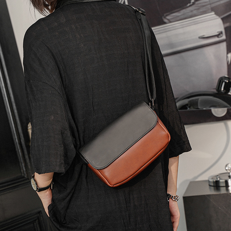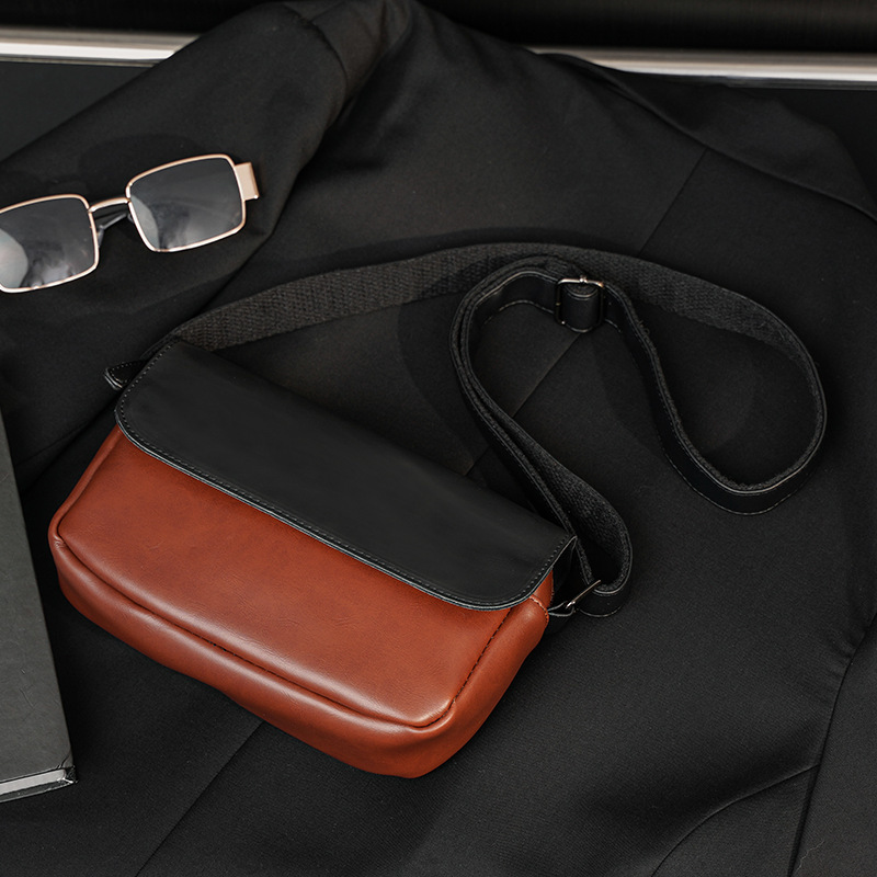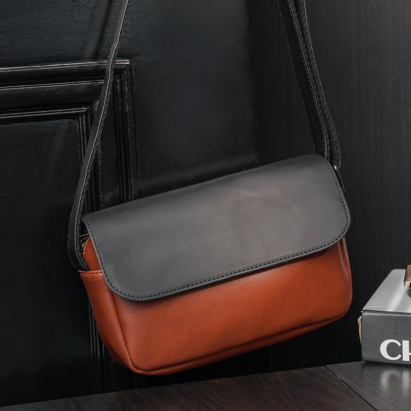 ☆メッセンジャーバッグ ショルダーバッグ メンズ バッグ 鞄 斜めがけ pu革 軽量 レトロ風 カジュアル ディリー ブラック&コーヒー