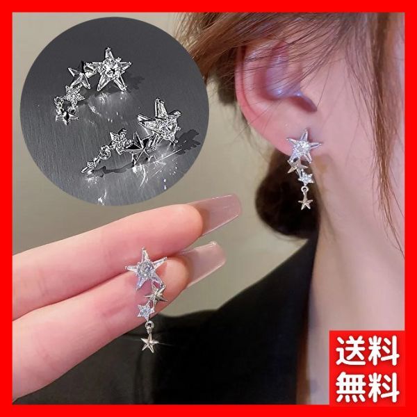 ピアス S925針 シルバー cz スター 星 レディース 韓国 ラインストーン キュービックジルコニア おしゃれ キラキラ 綺麗 #C1931-2