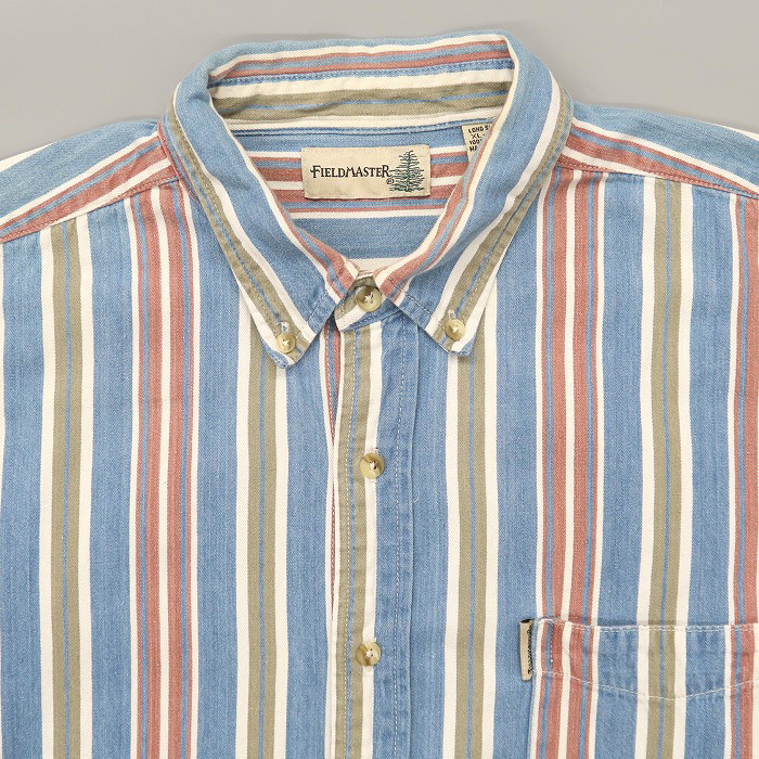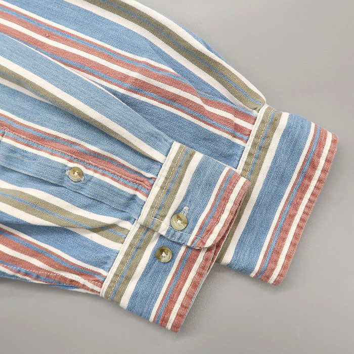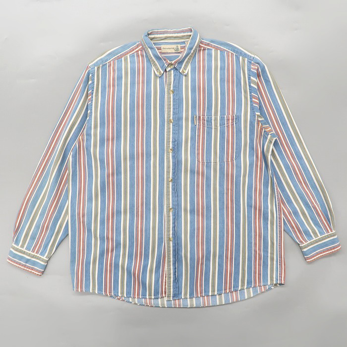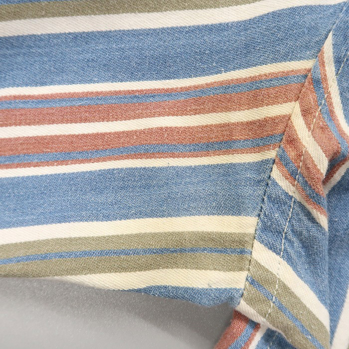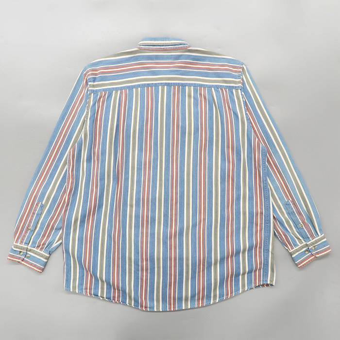 古着 ボタンダウンシャツ ストライプ 長袖 ブルーベース サイズ表記:XL gd67193