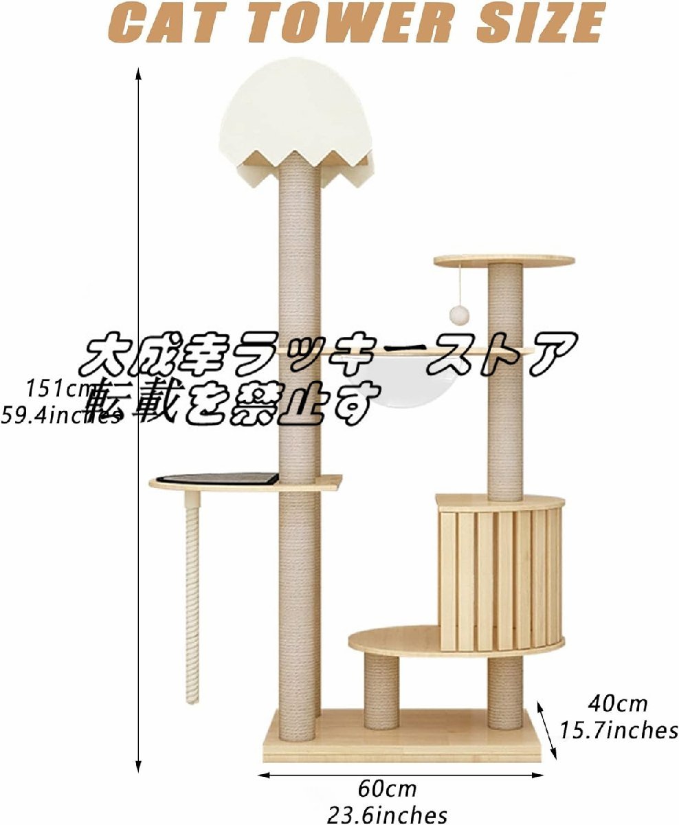 特徴: プラットフォーム、スリング、上部展望デッキ、スペース カプセル、猫のアパート、サイザルの引っ掻きポスト付き