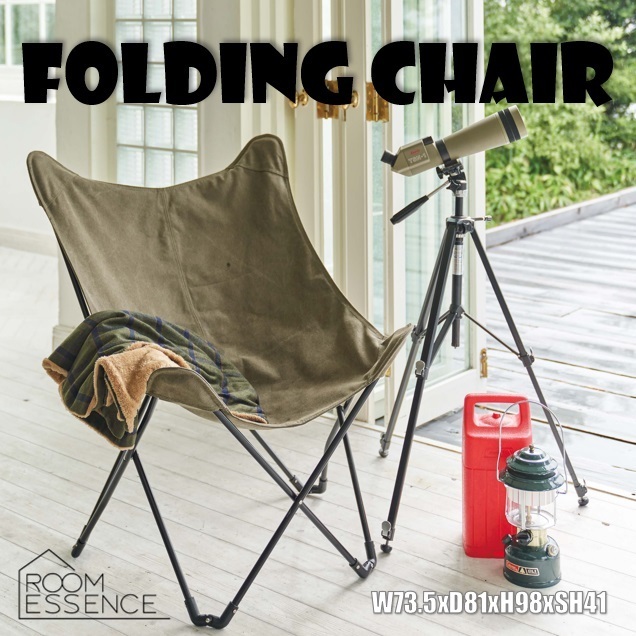 大人気のRoomEssenceシリーズ程よいサイズ感のキャンプチェアです。折りたたみ式なの収納スペースや移動にラクチン♪使いたい場所でサッと使えるコンパクトチェアです。インテリアの一部としてお家でキャンプもあり♪アウトドアなどで野外において雰囲気を楽しむのもバッチリ!・サイズ:約W73.5×D81×H98×SH41(cm)・素材:スチール(粉体塗装) ポリエステル コットン ※コチラの商品は、北海道、沖縄県及び離島へお届けできません。※1つでも2つでも送料は¥880(複数がお得です) セール 20221096s※イメージ画像に含まれる備品等は商品に含まれません。(例:販売商品のテーブル等に合わせたチェアや敷物、カップやディシュ等)