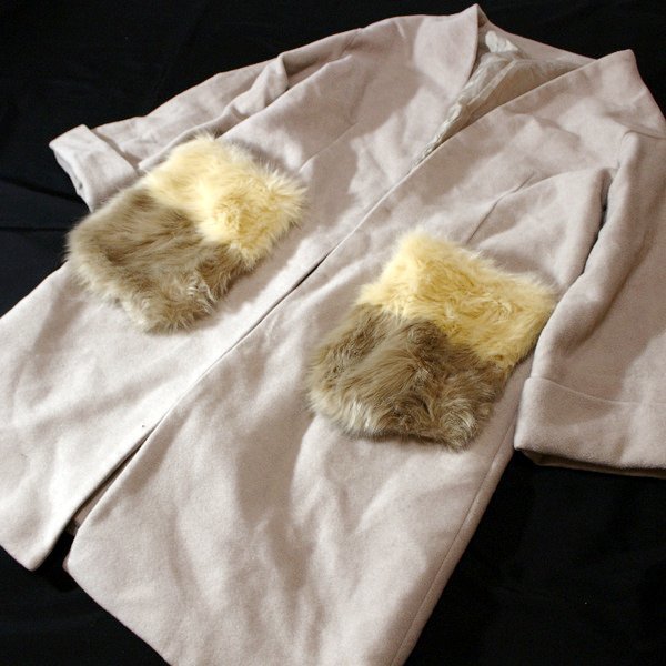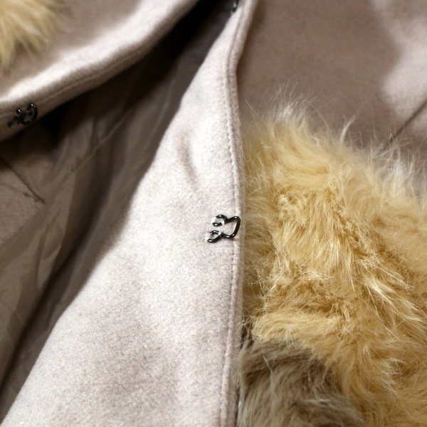 ゆったり可愛いノーカラーの2Wayフェイクファー・ウールコートです。