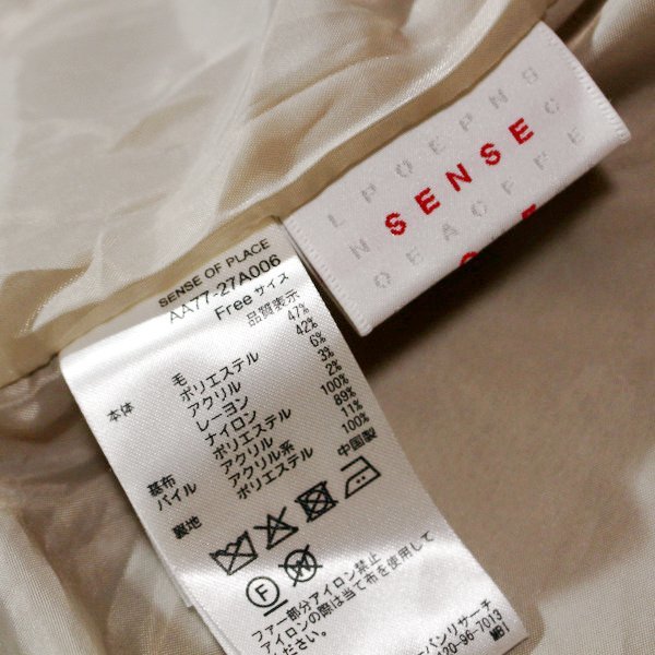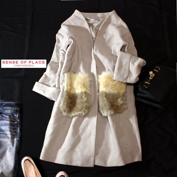 ☆☆ 美品 アーバンリサーチ SENSE OF PLACE ☆☆ 2Wayフェイクファー ゆったり可愛い ノーカラー ウールコート F 冬 23A12