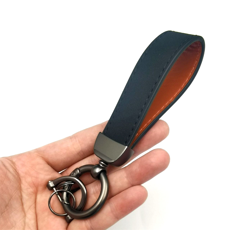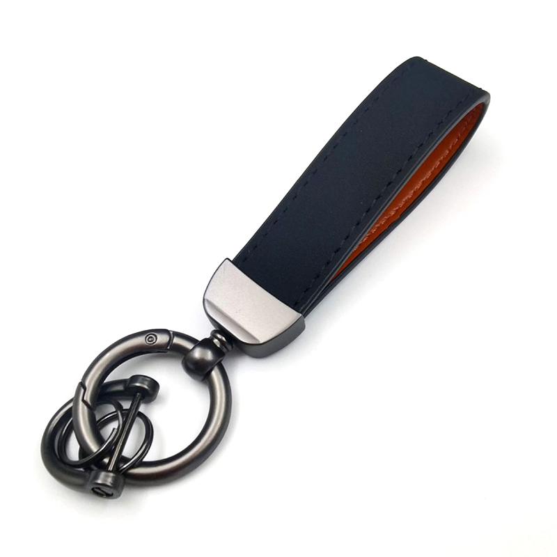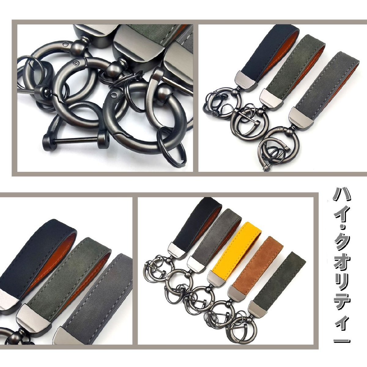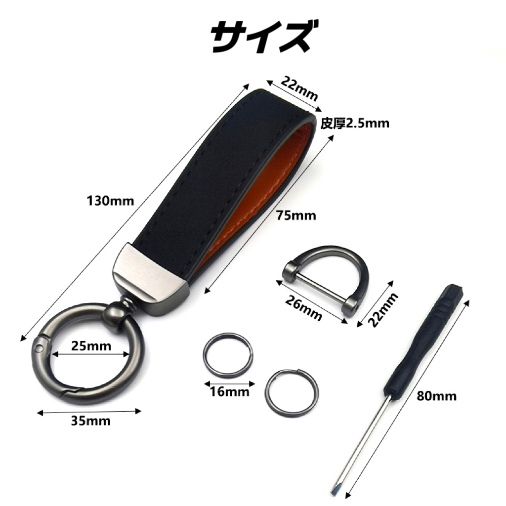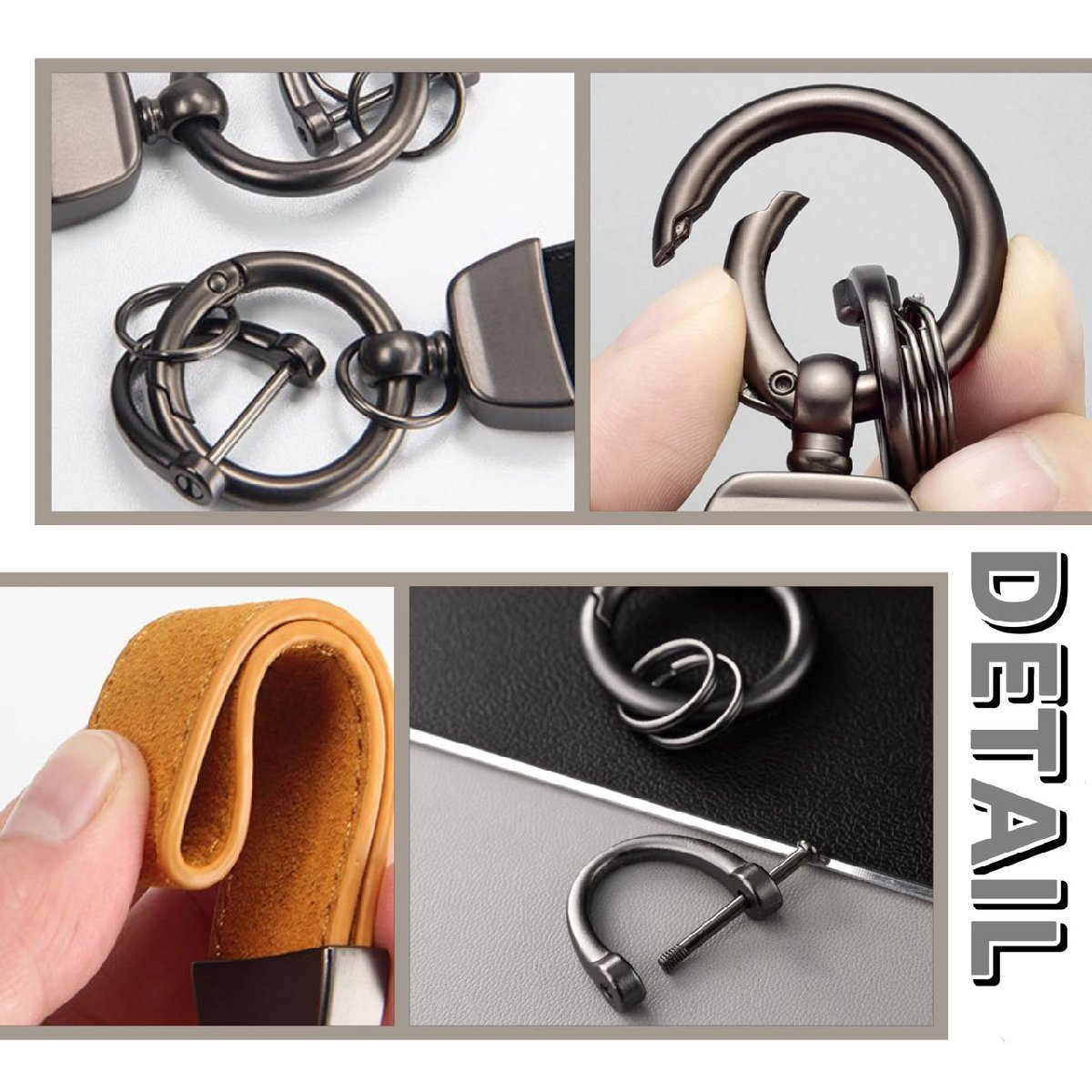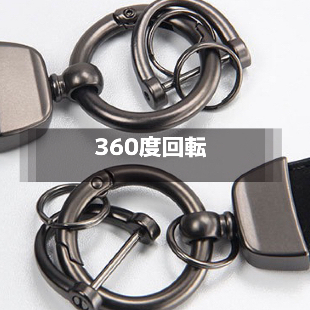 キーホルダー カーキーホルダー 本革 男女適用 レディース メンズ 360度回転 紛失防止Dリング ブラック K-09-05
