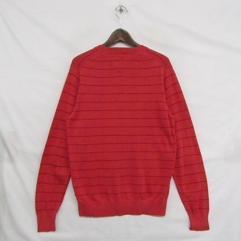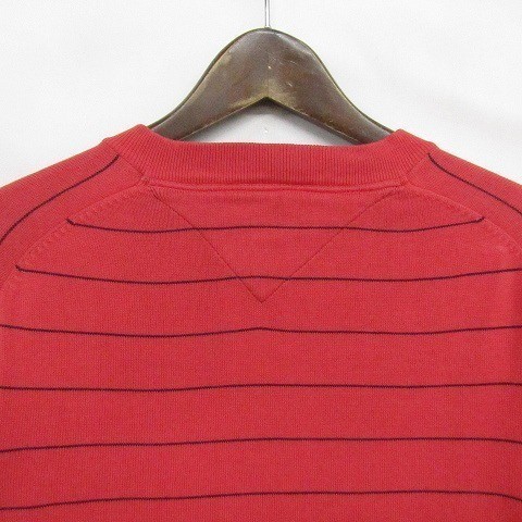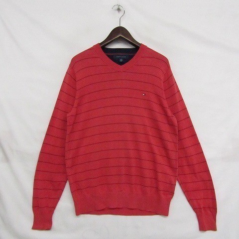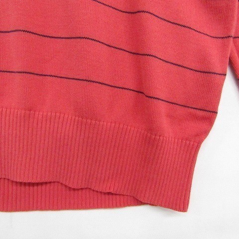 サイズ S トミー ヒルフィガー ニット セーター ハイゲージ ボーダー コットン サーモン ピンク TOMMY HILFIGER 古着 1AU1942