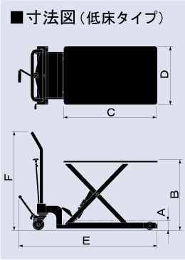 通常のテーブルリフト台車は210mm~、30%程度低床化しております。