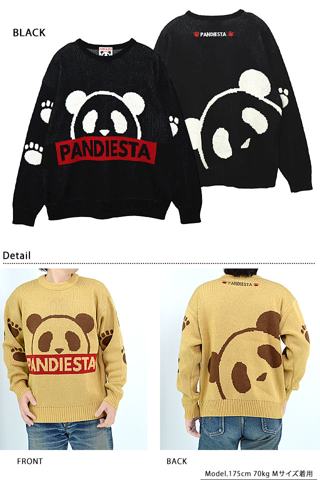 | 和柄ブランド【錦】の姉妹ブランドとして誕生した、お茶目なパンダをモチーフとした【PANDIESTA JAPAN】より「ブランドロゴジャガードクルーニット(533201)」のご紹介です。 冬アイテムの定番【ニット・セーター】アイテムが初登場! ブランドアイコンであるパンディエスタを大胆にもジャガード織で表現しました。 ジャガード織とニットの素材感はパンディエスタの雰囲気と相まって、ユニセックスな可愛らしいミディアムゲージのニットアイテムに仕上がっております。 保温性に優れたミディアムゲージのニットアイテム。 ウール素材を使用していないのでチクチクが苦手な方にもスタイリングしていただけますし、これからのシーズンにオススメの一枚です。 | |||||||||||||||||||||||||