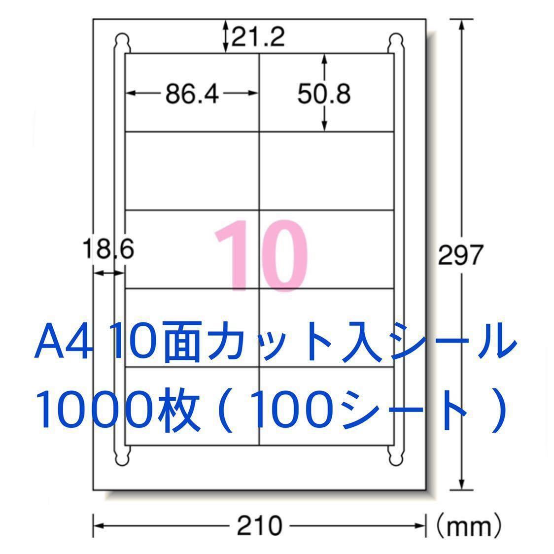 A4サイズ 10面カット入り、ラベルサイズ86.4mm×50.8mm。