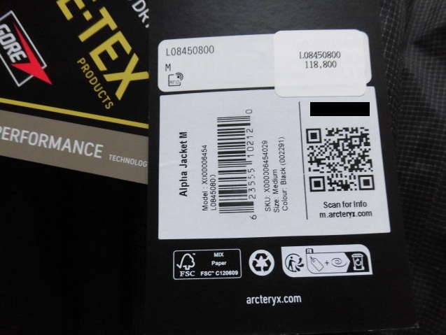 新品未使用の ARC'TERYX Alpha Jacket Men's L Black