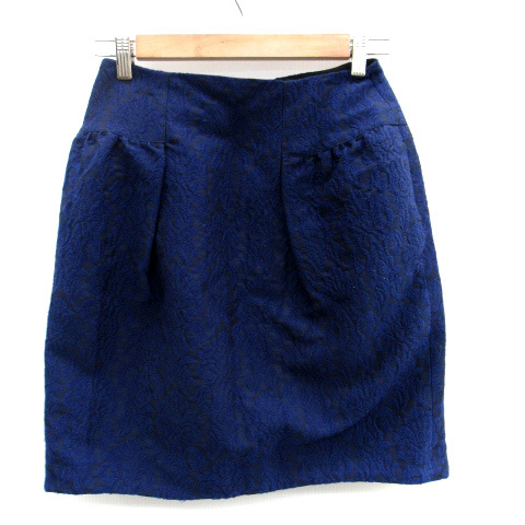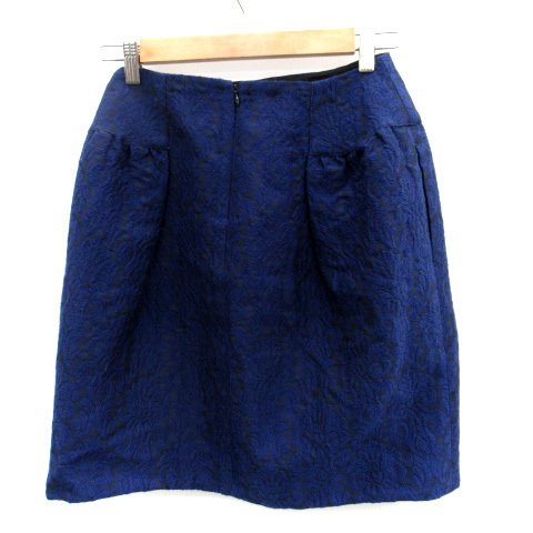 ボールジー BALLSEY トゥモローランド フレアスカート ひざ丈 ダマスク柄 ウール混 36 青 ブルー /SM14 レディース