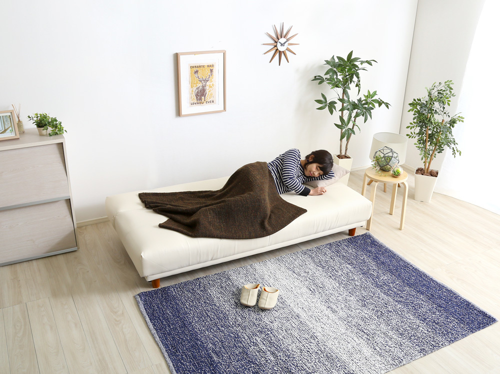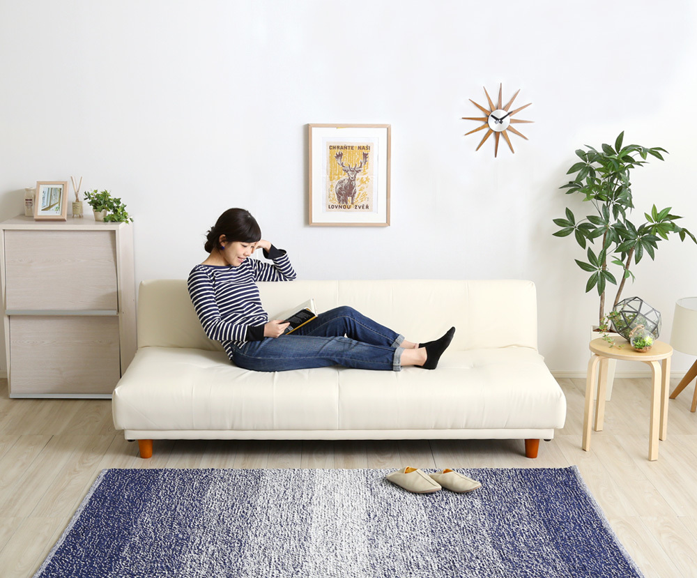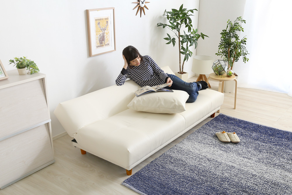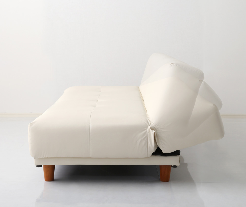 クッション2個付き、3段階リクライニングソファベッド(レザー3色)ローソファにも 日本製・完成品