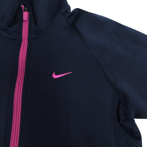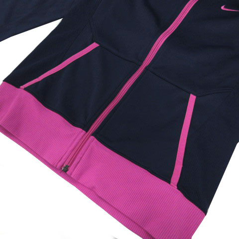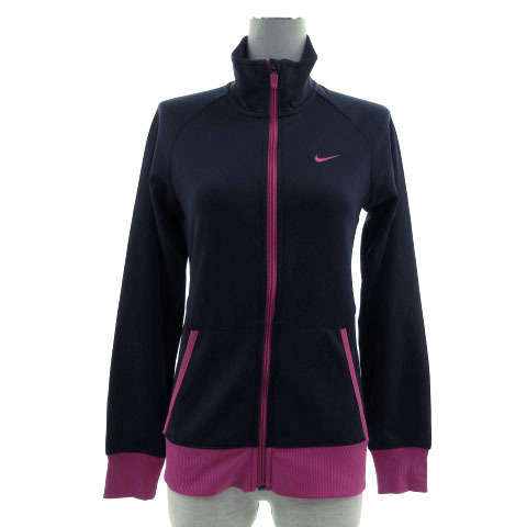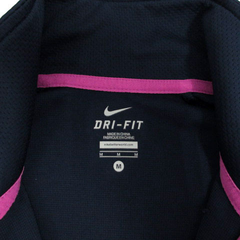 ナイキ NIKE ジャケット ジャージ DRI-FIT スタンドカラー ロゴ刺繍 ジップアップ ネイビー 紺 パープル系 ピンクパープル M