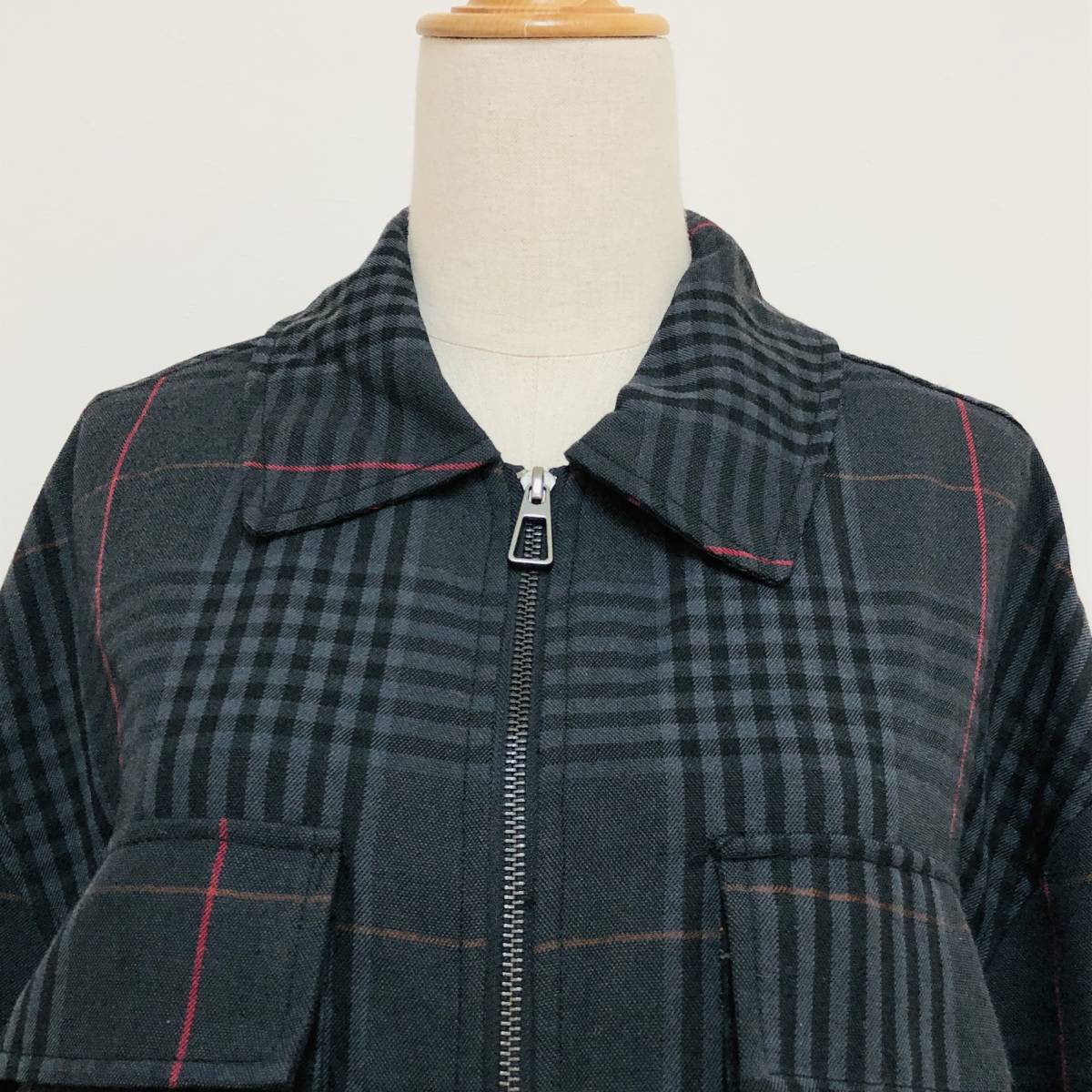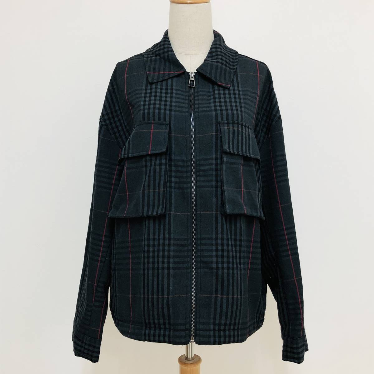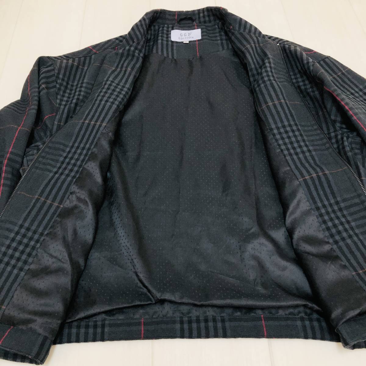 k2349 美品 GGD EDITION ジージーディーエディション ジャケット フルジップ サイズ2 黒系 チェック メンズ ベーシックカジュアルスタイル