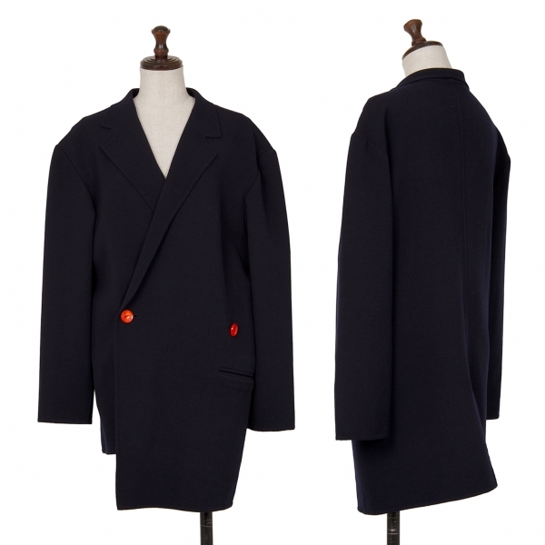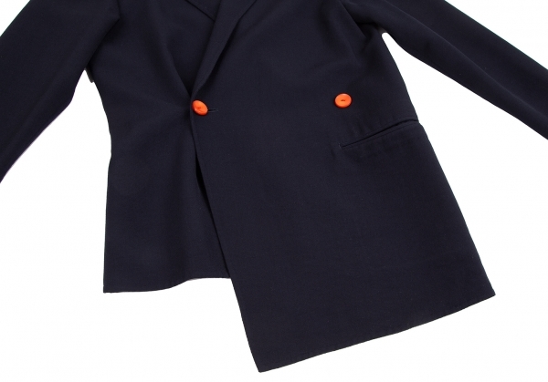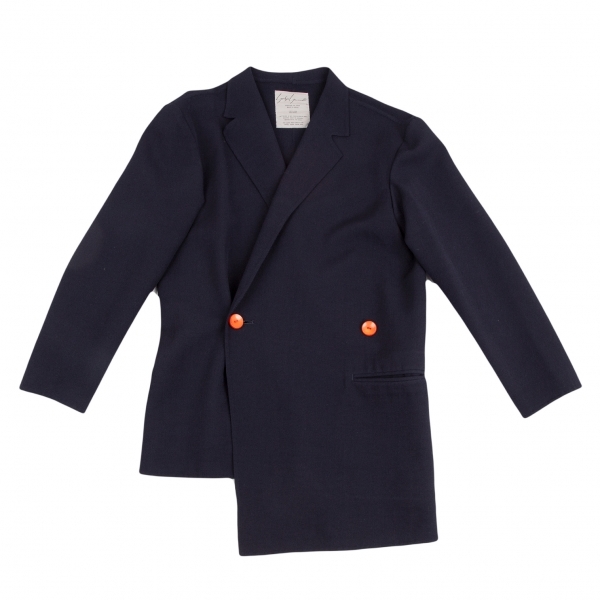| ヨウジヤマモト ファムYohji Yamamoto FEMME ウールアシンメトリーダブルジャケット 紺S |