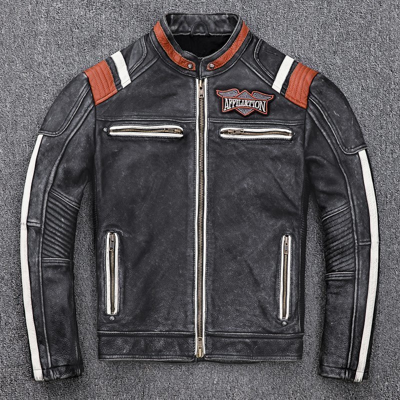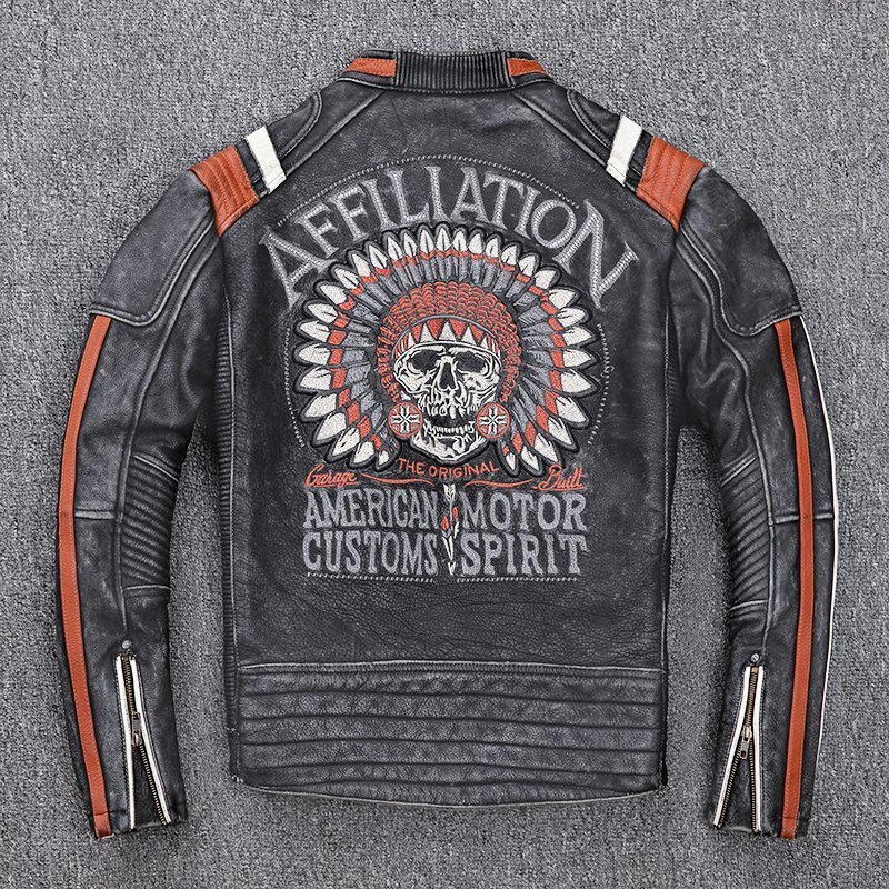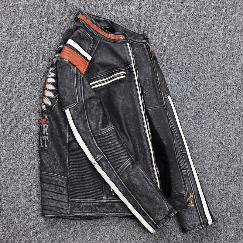 秋冬 バイクレザージャケット 上品 本革 高級 牛革 豪華刺繍 ユーズド加工 ライダースジャケット 革ジャン S~4XL