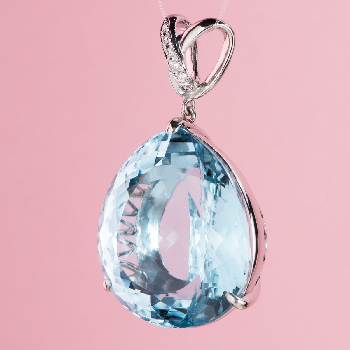 大粒で美しいすっきりした色のブルートパーズを使用したペンダントトップ