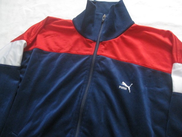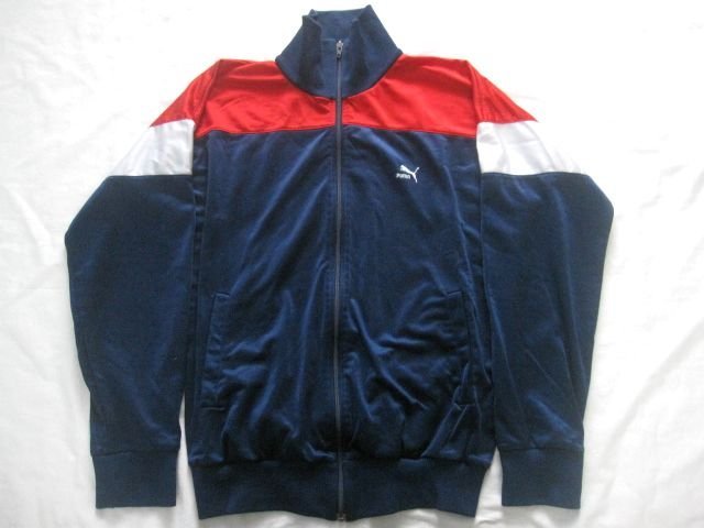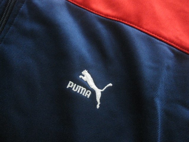 ヴィンテージPUMAプーマ 光沢トラックトップジャージ。内側首近辺のステッチが解れておりタグが取れてしまっているのでサイズ等詳細不明です。ジップはYKKのコイルです。ユーズドです、古着なりの使用感はございますが着用に差し支える大きなダメージはございません。ノークレームノーリターンノーキャンセルでお願いします。