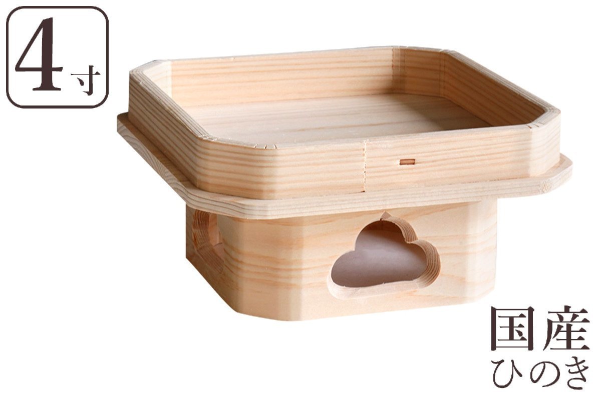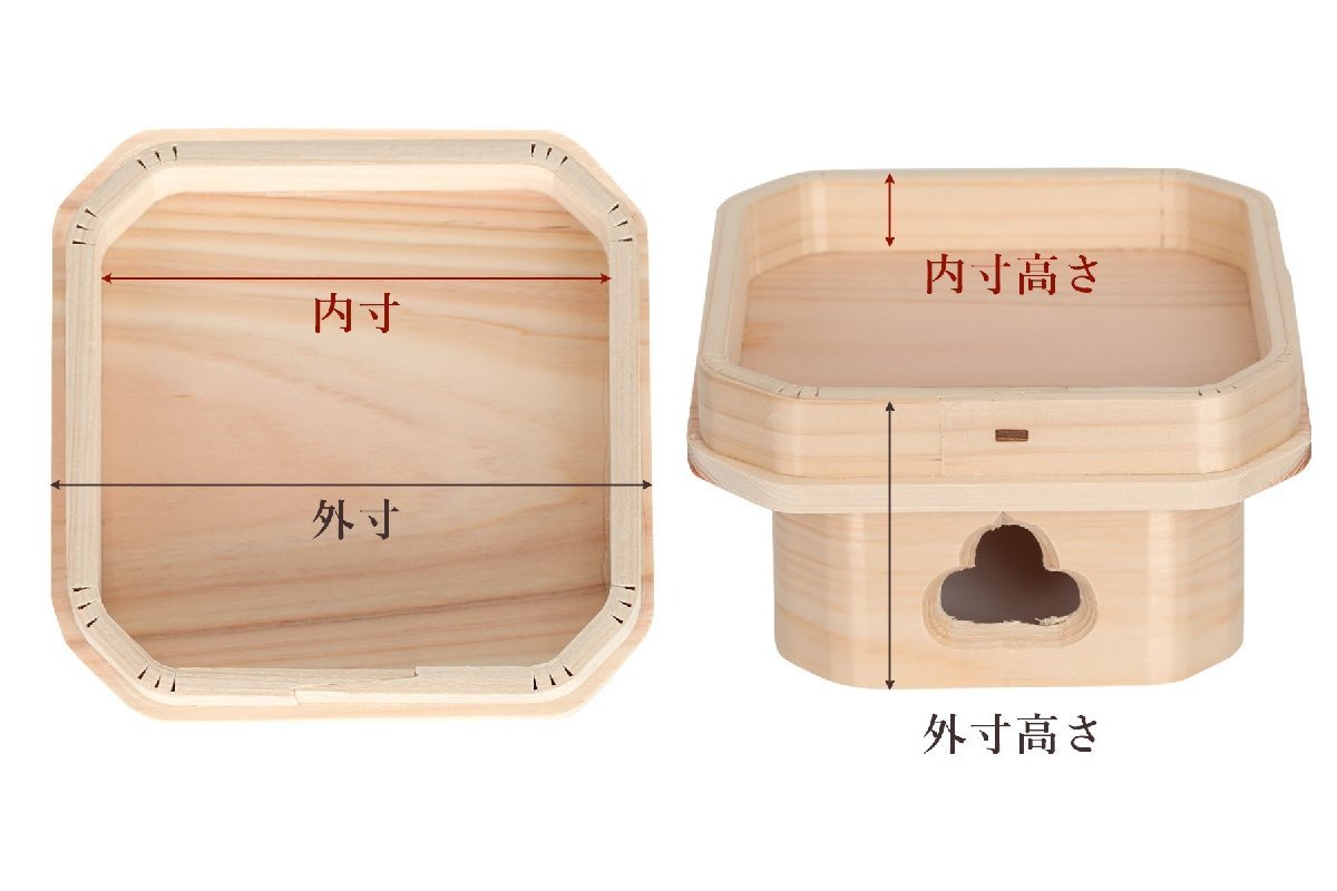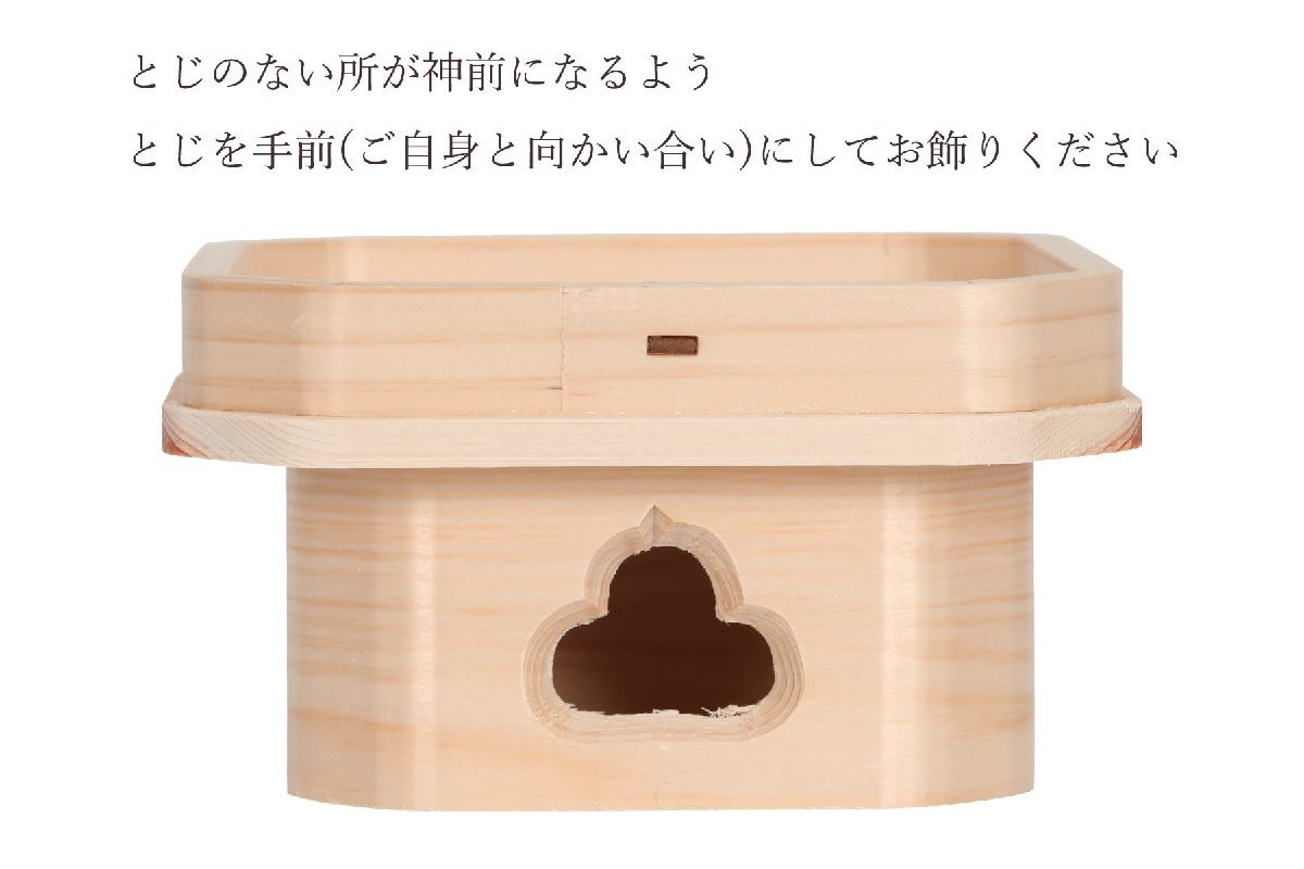 国産ひのき材の遠山三宝です。三方に穴があいており、手前から見て一番奥側に穴の空いていない面が来るように置きます。 神様へのお供えのほか、お正月の鏡餅台、節分の豆、ひな祭りのお菓子や野菜・果物、節句の菱餅、十五夜にはお月見団子を置いたりと、季節のお祀りに様々な用途でご使用頂けます。 木肌が美しく、丁寧に作られた手造り神具。普段のお祈りを厳かに。 |