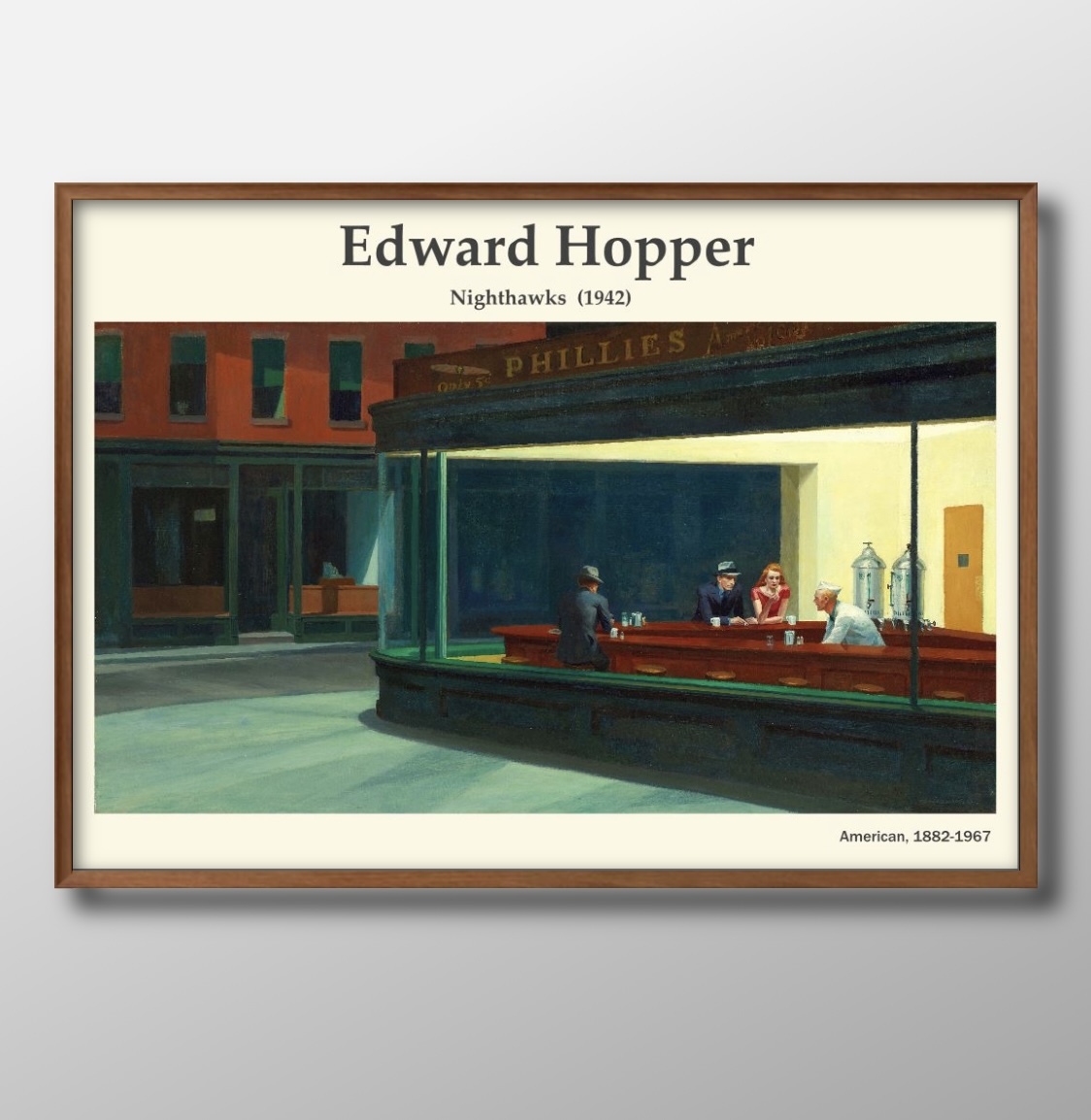 1-4479■送料無料!!A3ポスター『エドワードホッパー ナイトホークス』北欧/韓国/絵画/イラスト/マット/当店限定