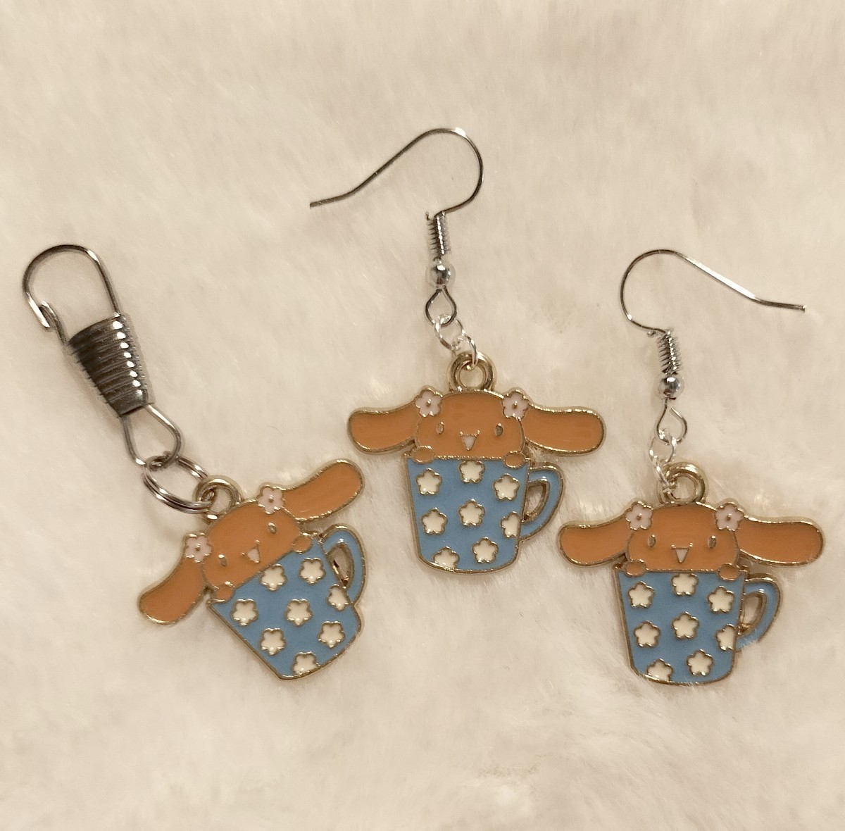 こちらピアス/イヤリングとお揃いのキーホルダーの3個セットです。