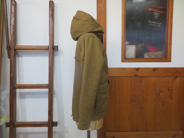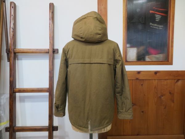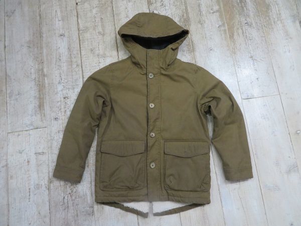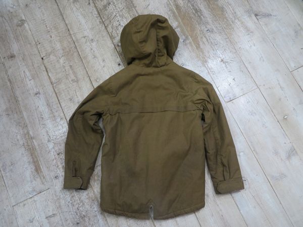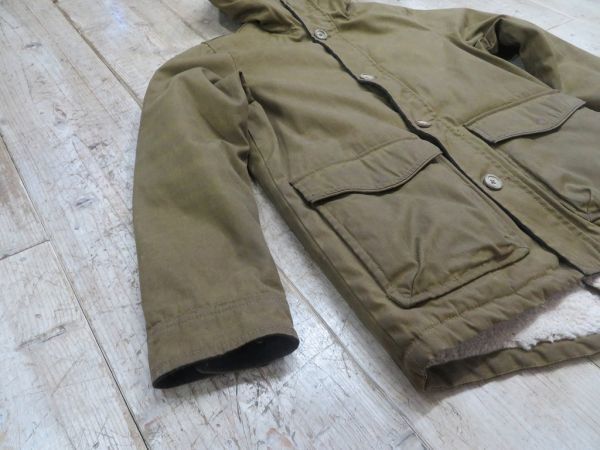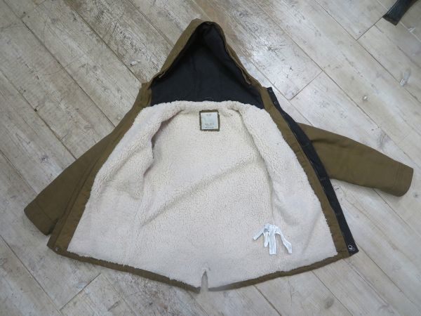 出品前にホームクリーニングしました。使用感があります。表地にスレ、生地のアタリ、黒ずみ汚れが各所にあります。気になるような、破れ、穴あきはありません。着用に支障があるような破れ、縫製の解れはありません。裏地のフリース素材に潰れ、毛羽立ち、毛玉があります。