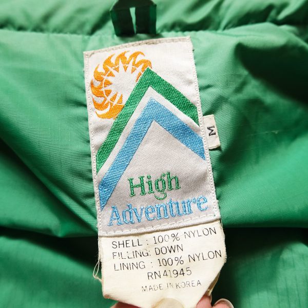 70's 80's ハイアドベンチャー ナイロン ダウンジャケット (M) 黄緑 刻印無しボタン 70年代 旧タグ オールド アウトドア ビンテージ
