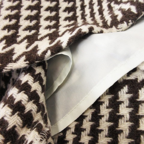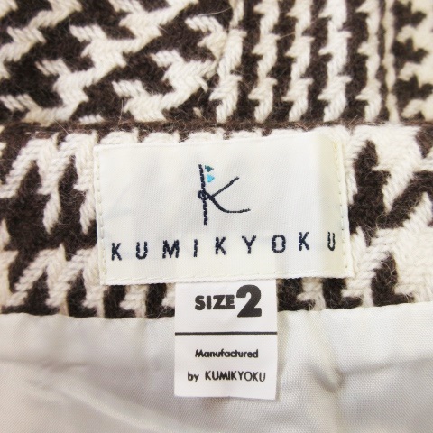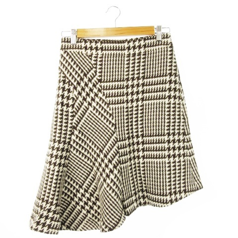 クミキョク 組曲 KUMIKYOKU スカート フレア ひざ丈 アシンメトリー ヘムライン 変形 ウール アンゴラ混 厚手 千鳥格子 2 茶 ブラウン