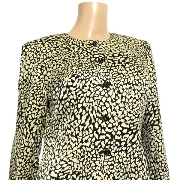 | 商品詳細 | NO-A5191 ★【ブランド】 *jun ashida (株)ジュンアシダ ★【特徴】 *黒を基調としたベージュのまだら模様が気品溢れる大人フォーマルジャケットです。 さらりと手触りが良く、軽やかな着心地の上質シルク100%素材。 襟元はスッキリとしたノーカラー仕立てなのでアクセサリーを合わせるとより華やかな印象に。 フロントボタン7つ留め仕様。 両サイドの裾部分にスリット入り。 シルクを贅沢にデザインした高級感のある美形フォーマルジャケット、是非いかがでしょうか♪ ※こちらは気持ち良くお召しいただく為に、高級クリーニングをお掛けしてからお届けいたします。 発送まで4営業日ほどいただきますことご了承ください。 ・肩パット○ ・裏地○ ・伸縮性× ・ポケット× ・季節性 春夏向け ※状態につきましては当社基準のランク表も合わせてご参考下さい。 | ||||||||||