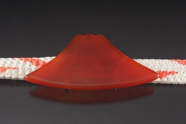 石は赤い瑪瑙で光に透かすと縞模様がぼんやりと浮かび上がります。