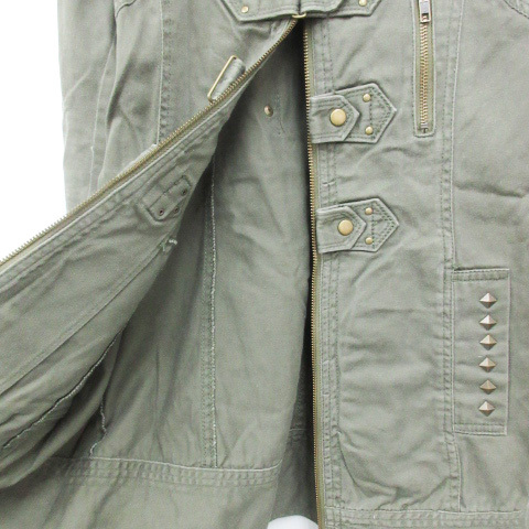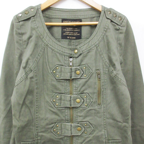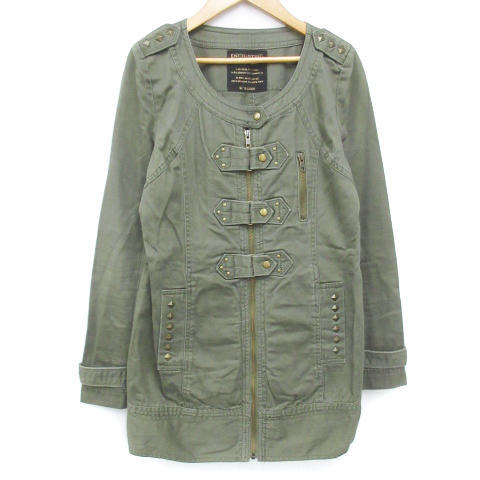 オゾック OZOC ミリタリージャケット ノーカラージャケット ロング丈 ジップアップ 38 カーキ /FF7 レディース