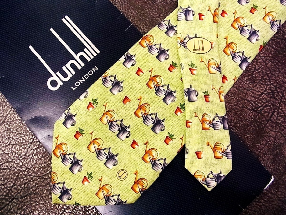 ♪vr0025♪良品♪【dunhill】ダンヒル【ジョウロ 植木鉢 dロゴ 柄】ネクタイ