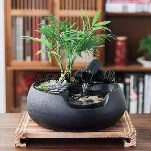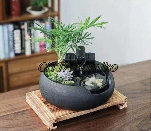 高品質 人気美品★ セレブ好物卓上噴水 天然 加湿器 植木鉢 竹 玄関噴水 風水 加湿 開運書斎用 癒し インテリア雑貨