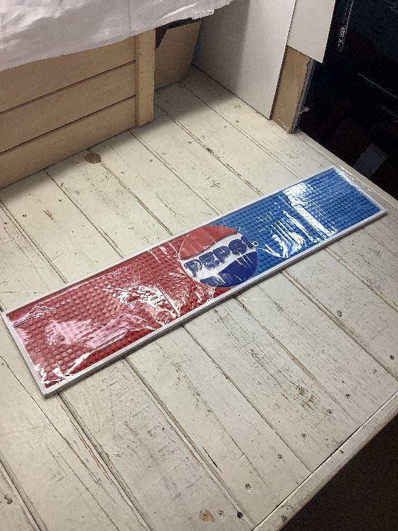 【210591】洗ったグラスや客のボトルキープを置くマットです素材もラバー製で水滴キャッチ用に、 凹凸しているので水はきに便利です。インテリとしてデスクの上に置いてもアメリカンなマットです。サイズ H0.6×W60.5×D13.2cm