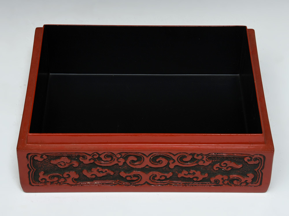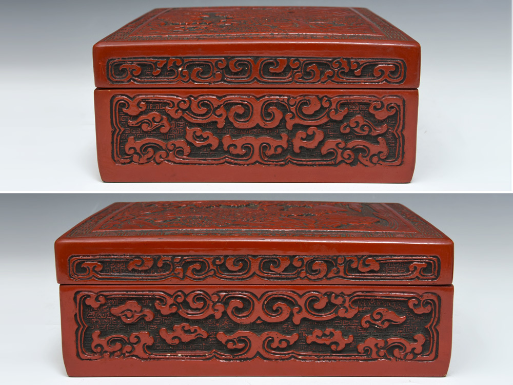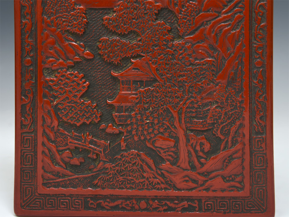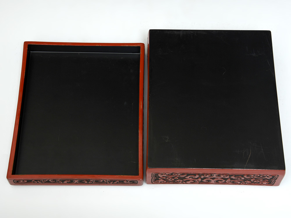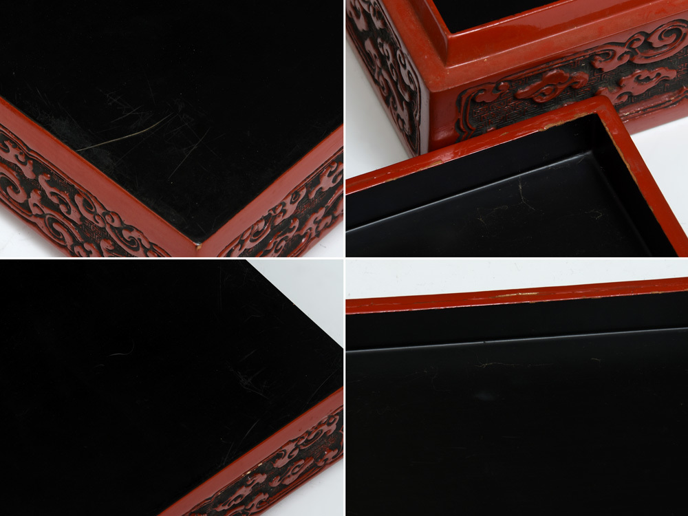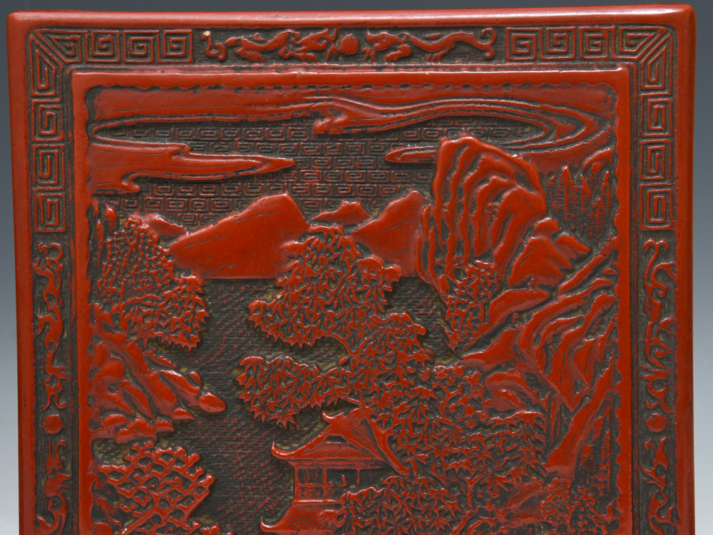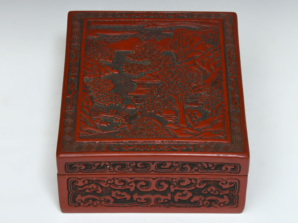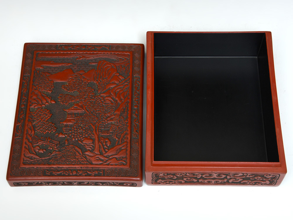 仙台堆朱 楼閣山水図 硯箱 彫漆 天然木 漆器 文箱 書道具 文房具 村上堆朱 |
