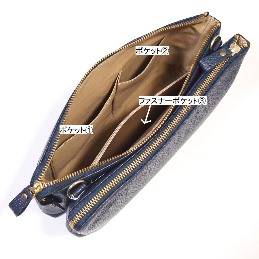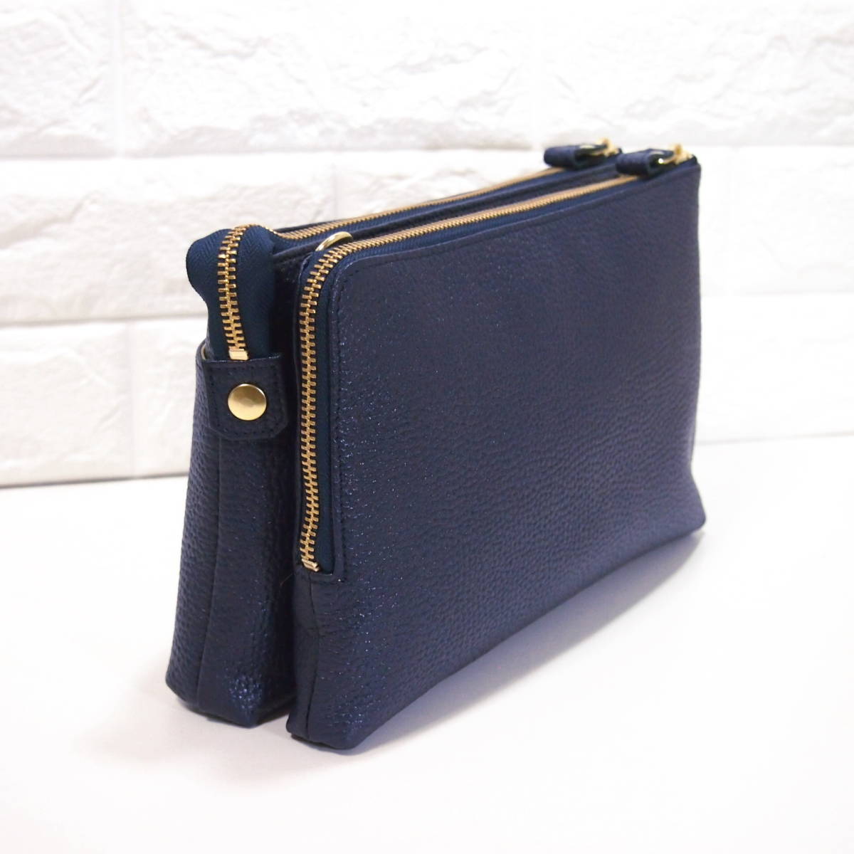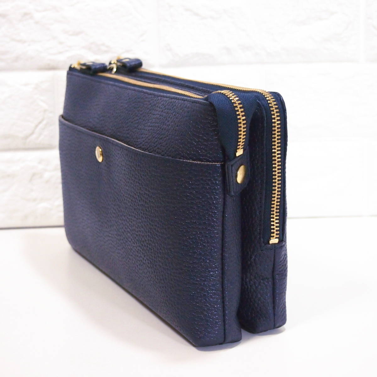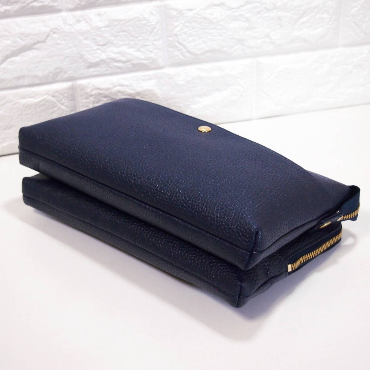 ★新品★ハンドメイド★日本製★本革★お財布ポシェット★L字ファスナー・特大寸★斜め掛けショルダーバッグ★ネイビー★オープンポケット