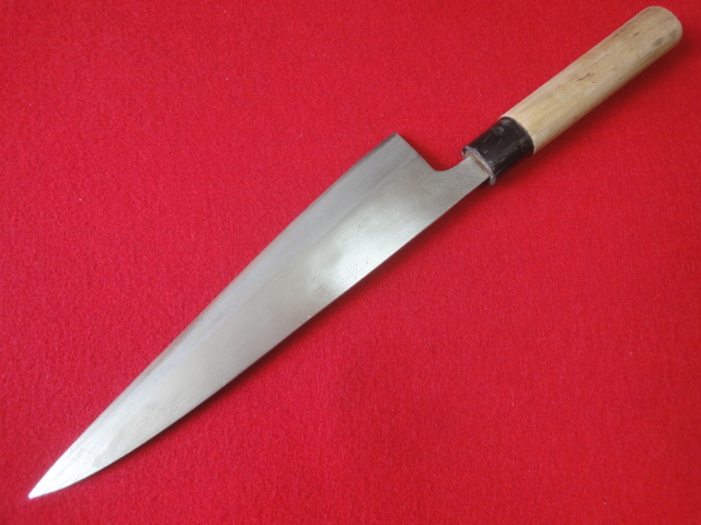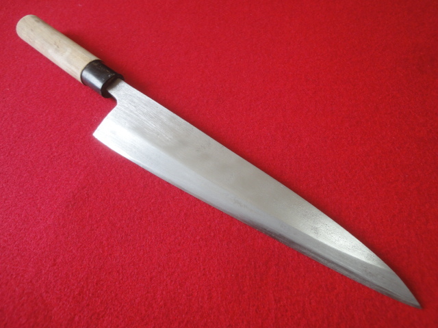 【丸勇】※請合 身卸出刃包丁 刃渡24㎝ 全長40.7㎝ 峰厚5.8mm ※片刃 中古品 全国一律送料1100円