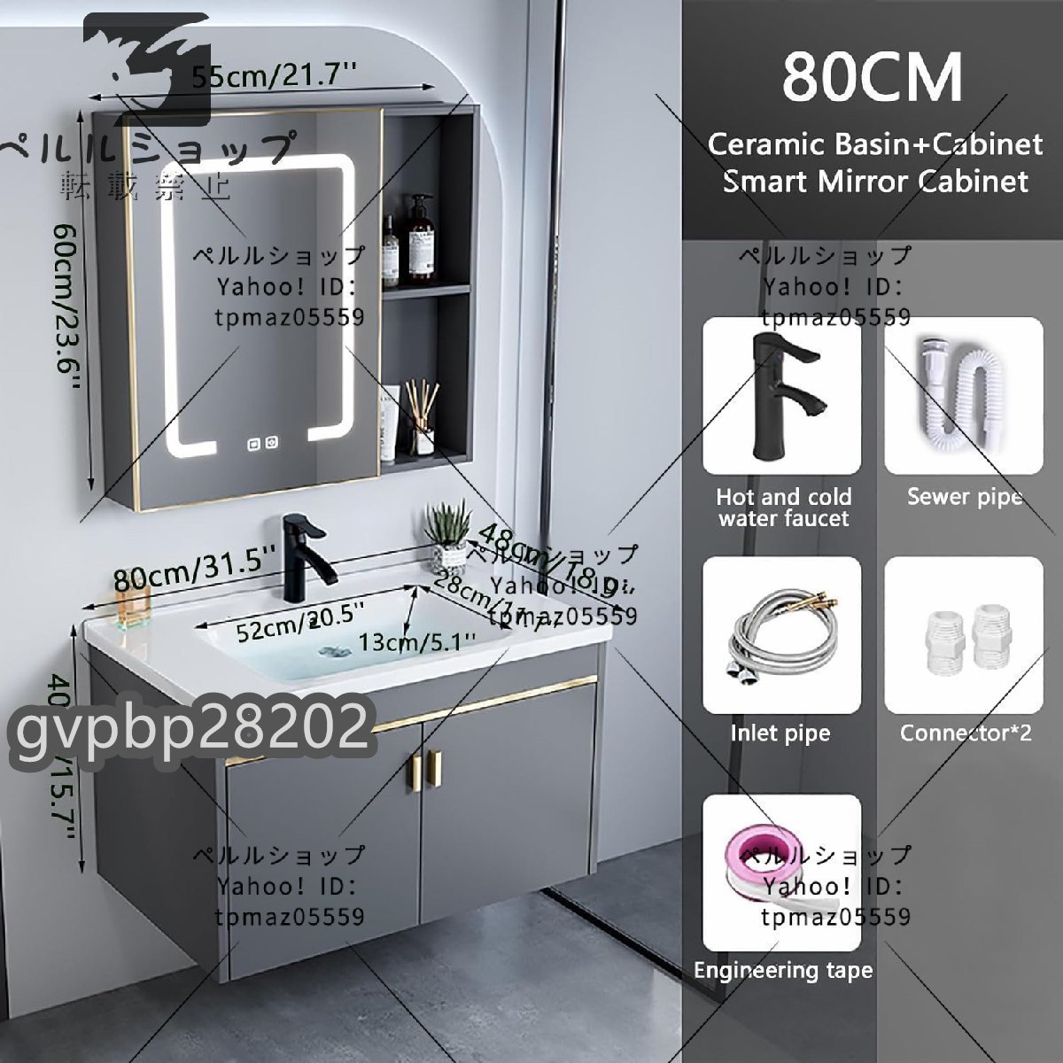 セラミック洗面台シンク付きモダンな洗面化粧台、自立型 高精細スマートミラーキャビネット Size : 80cm