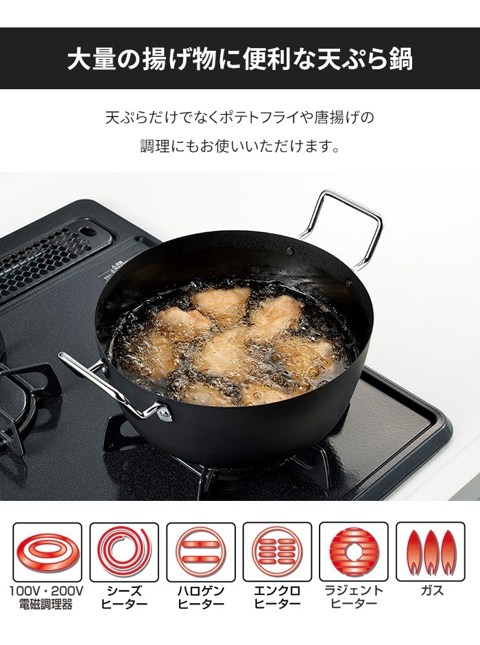 | [天ぷら鍋]鉄(底の厚さ0.8mm) [手付きフライヤー]18-8ステンレス |