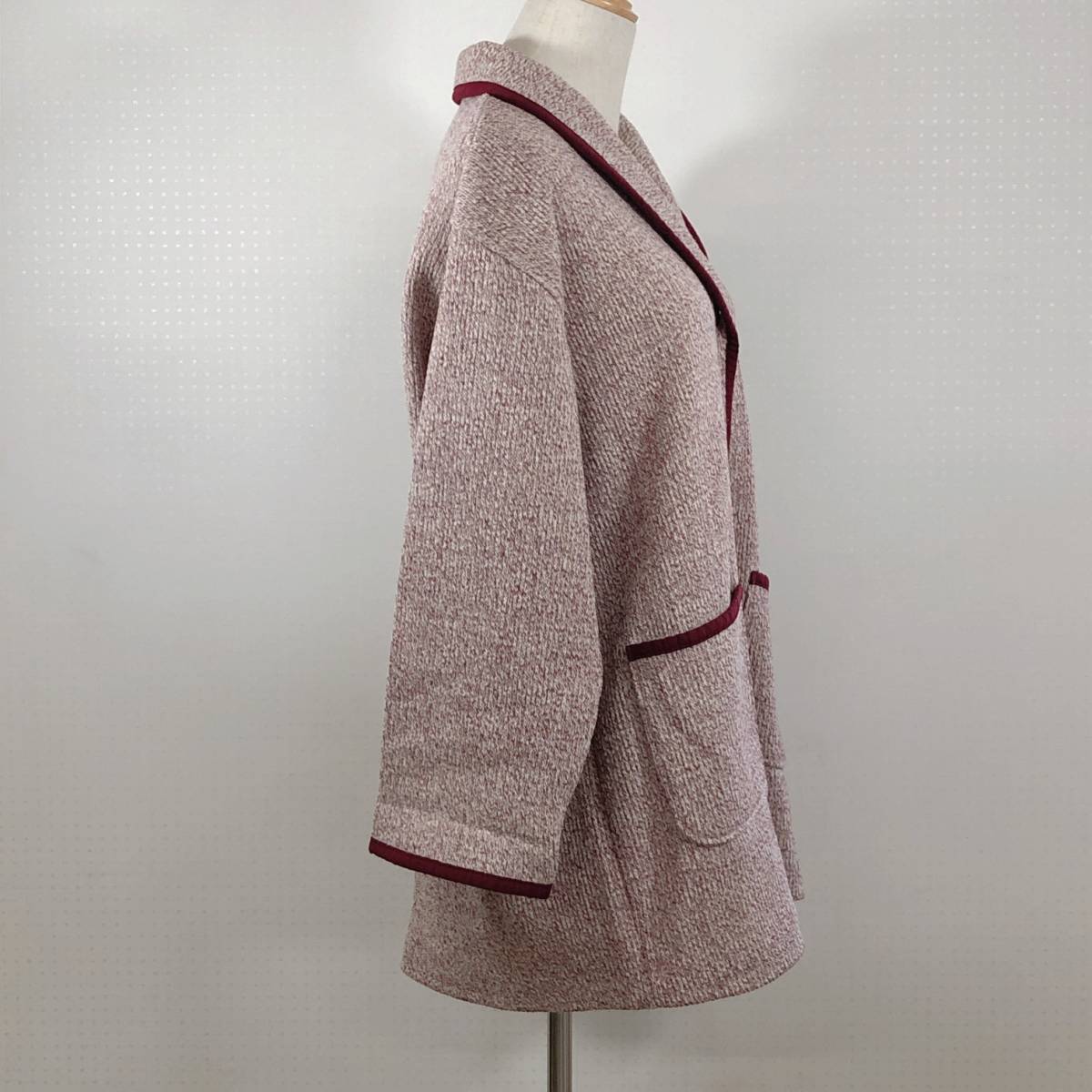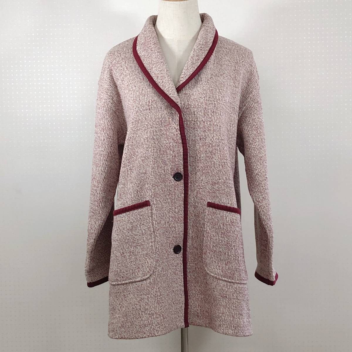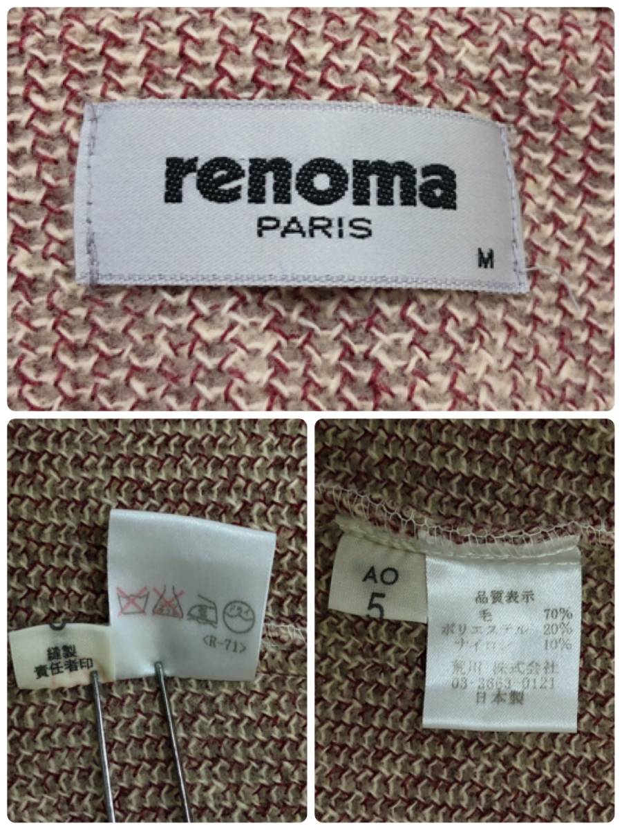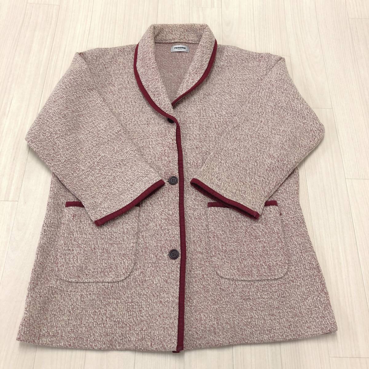 Y0055 renoma レノマ レディース アウター コート 長袖 Mサイズ レッド 赤 ホワイト 白 毛素材含 昭和レトロ 防寒 シック 秋冬 エレガント