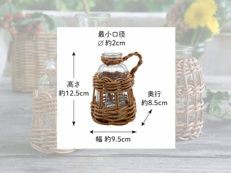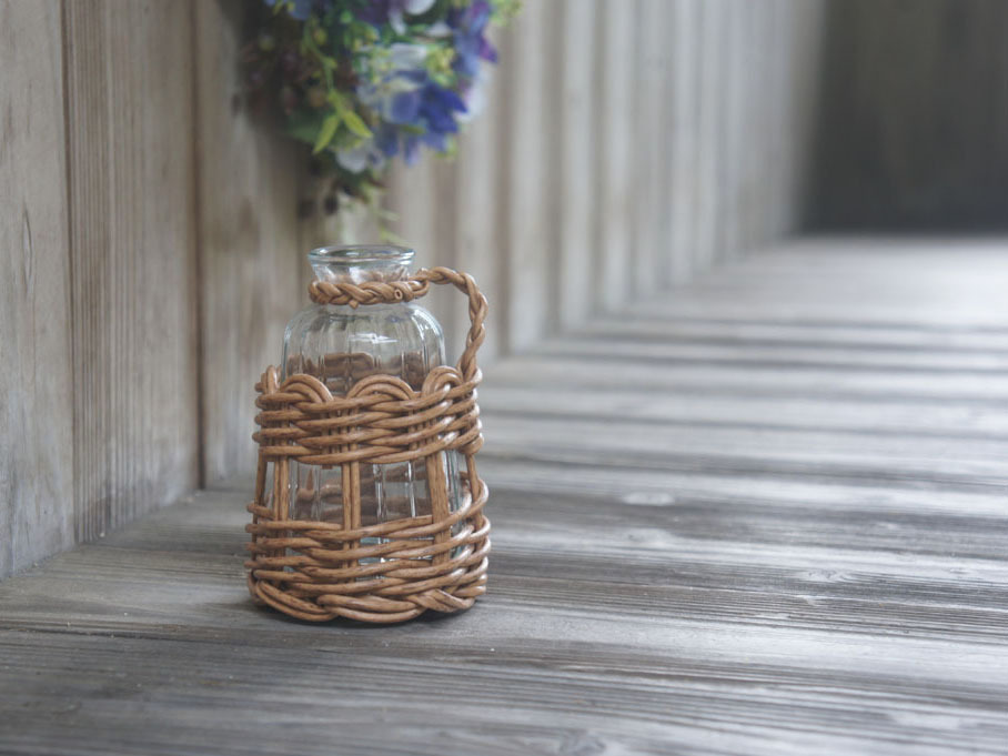 Sサイズ ハンドル型 かわいい 花瓶 フラワーベース ミニ バスケット ガラス 一輪挿し 花束 ディスプレイ おしゃれ