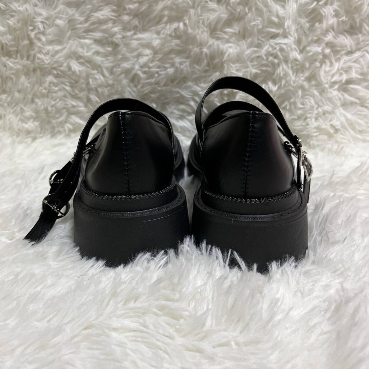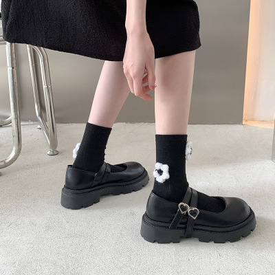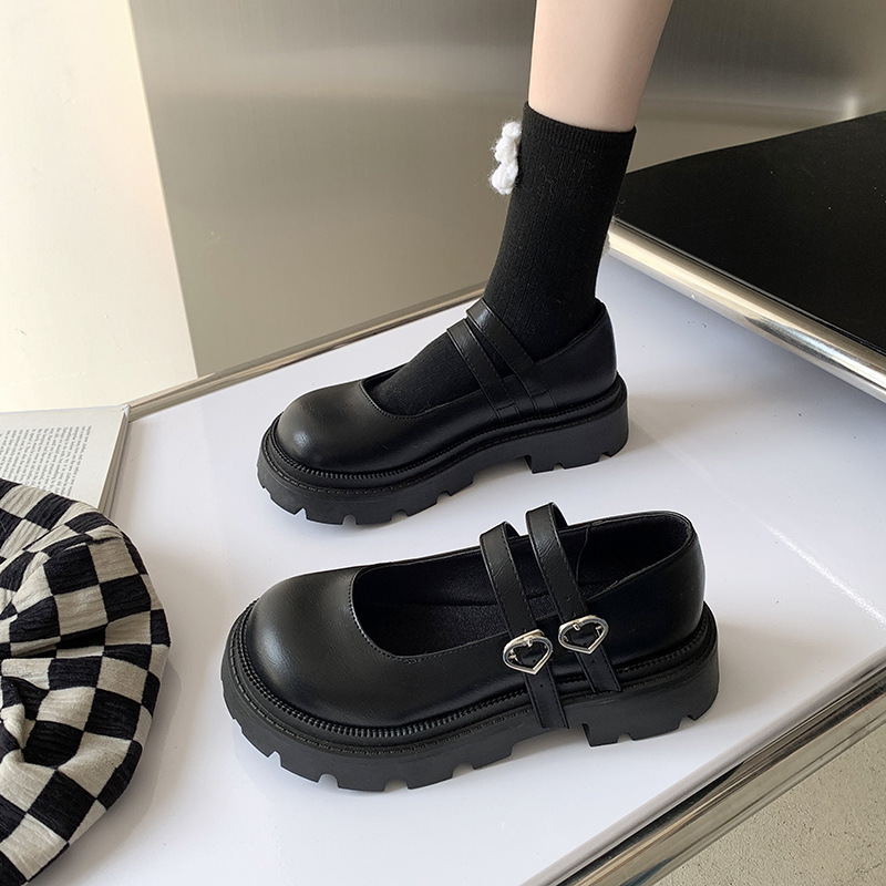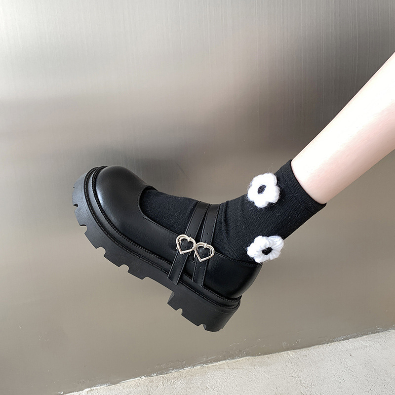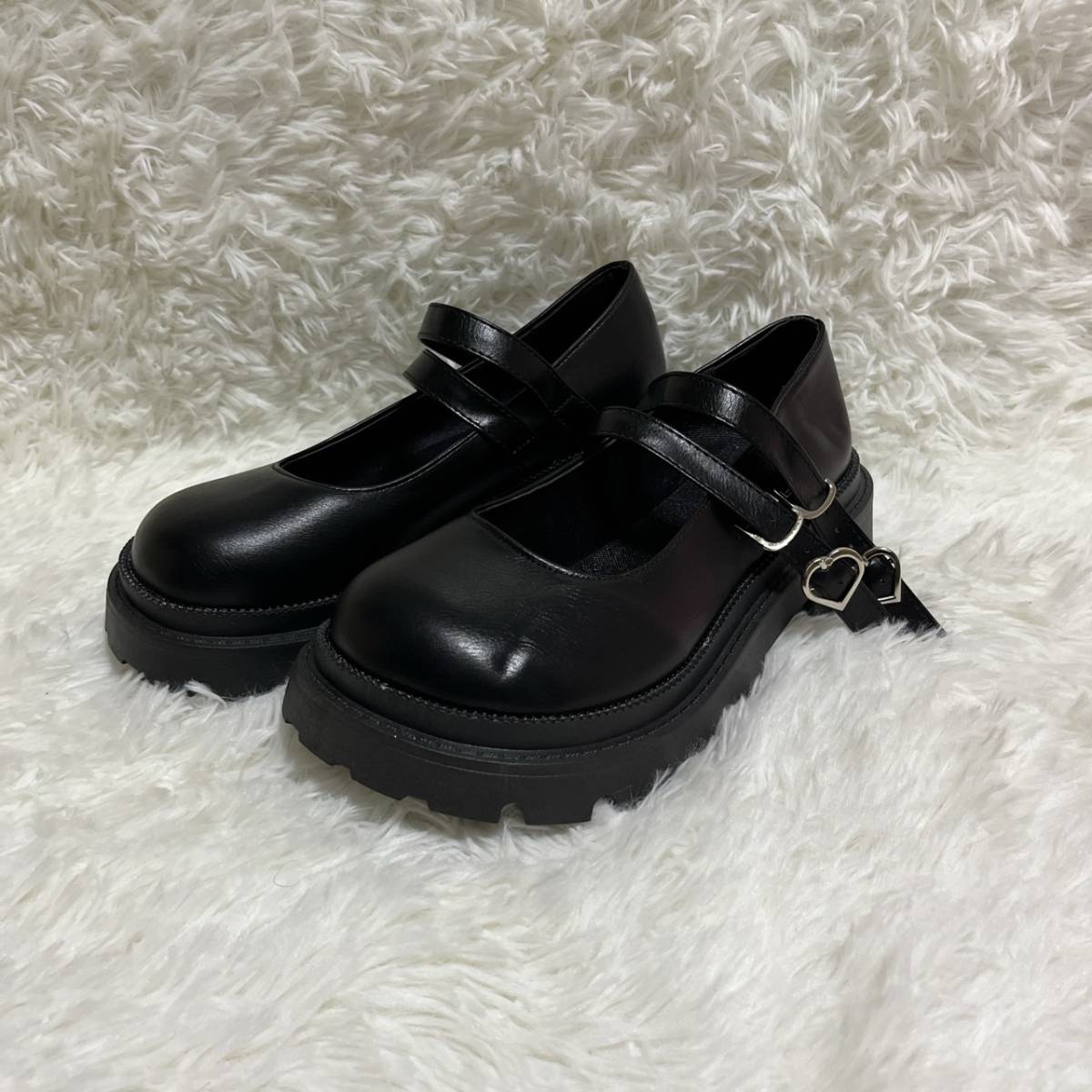 23cm レディース 量産型 厚底 パンプス 地雷系 ハートバックル 可愛い 靴 シューズ マットブラック 499 M11